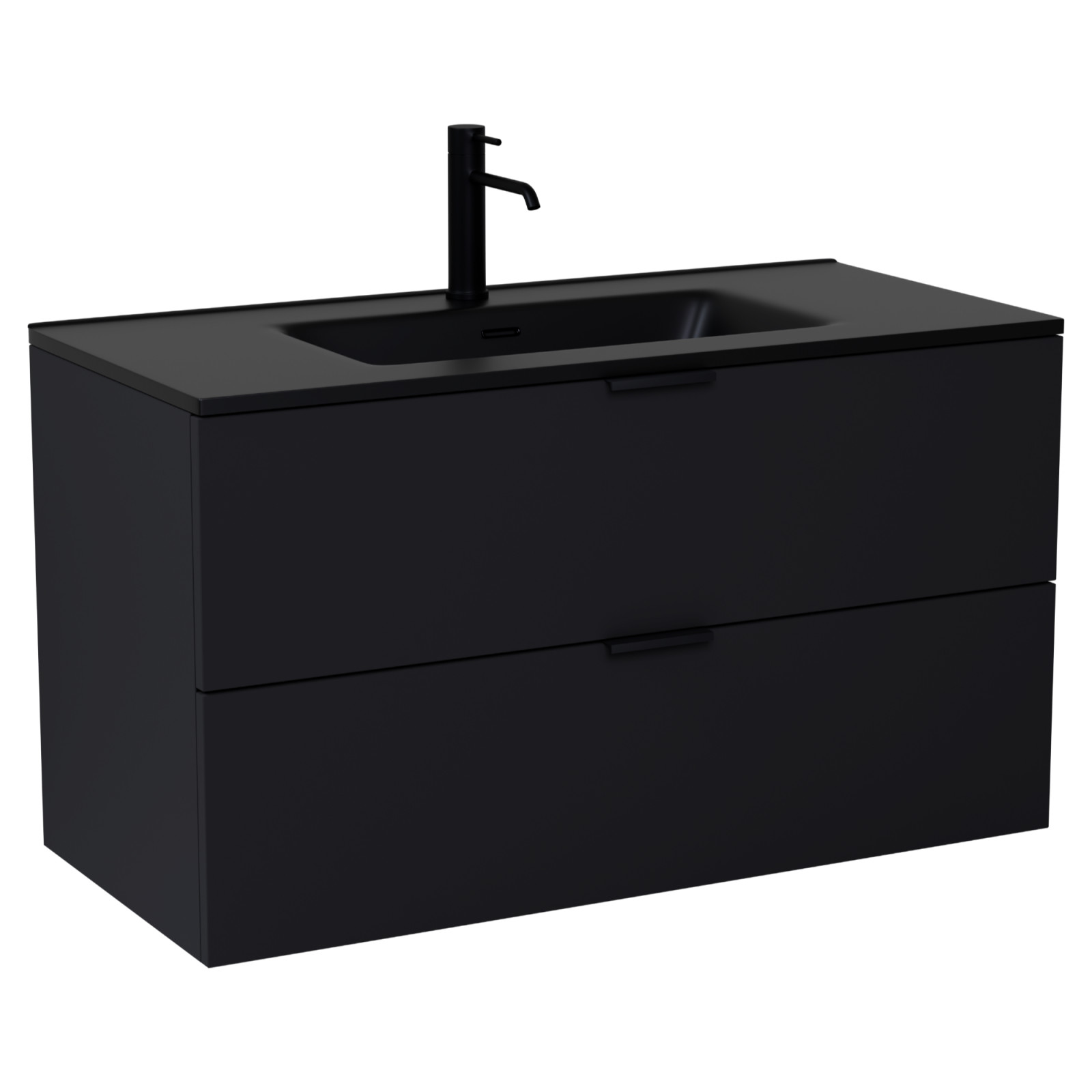 Palermo Matt Black 100 komplett fürdőszoba bútor, matt fekete fogantyúkkal