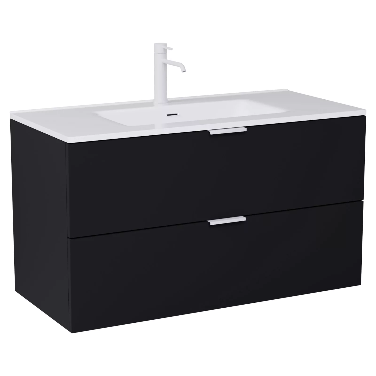 Palermo Matt Black 100 komplett fürdőszoba bútor szett, matt fehér fogantyúkkal