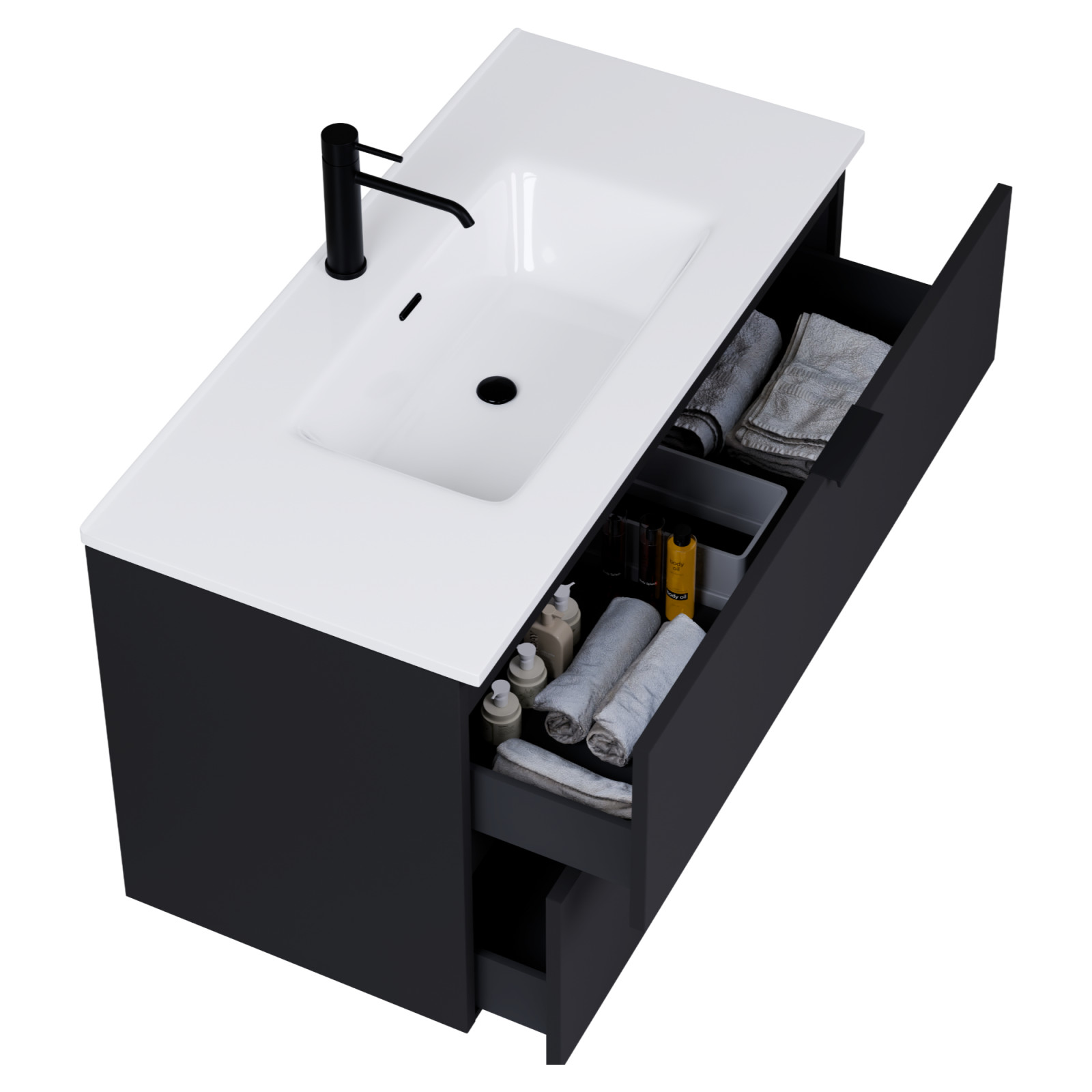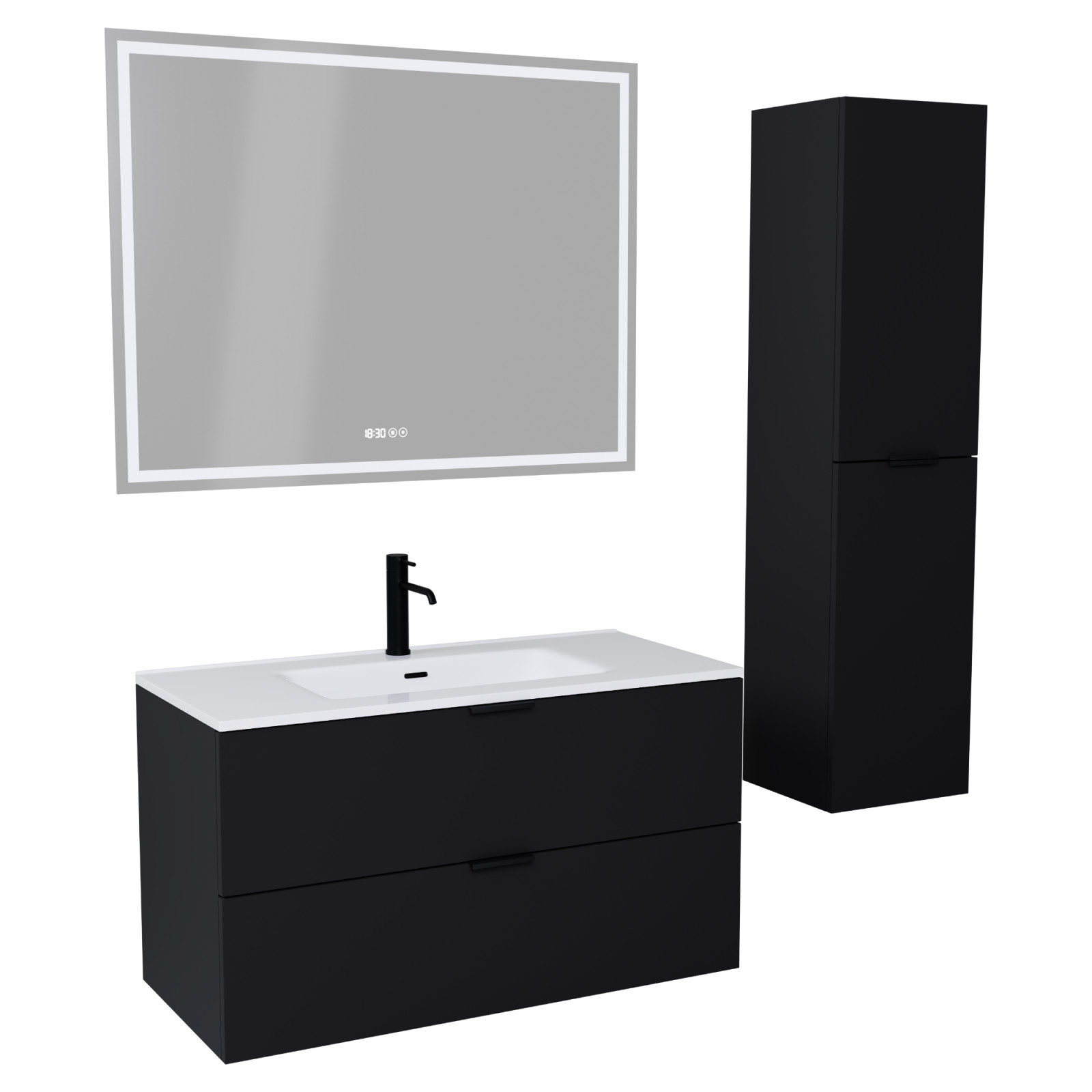 Palermo Matt Black 100 komplett fürdőszoba bútor szett, matt fekete fogantyúkkal