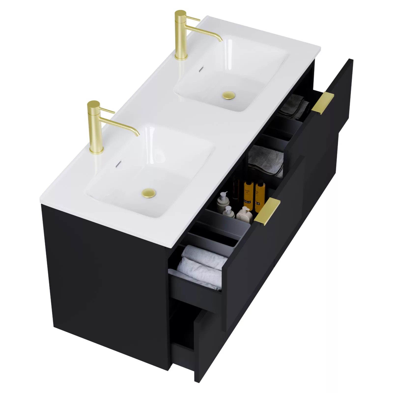 Palermo Matt Black 120 komplett fürdőszoba bútor szett, szálcsiszolt arany fogantyúkkal