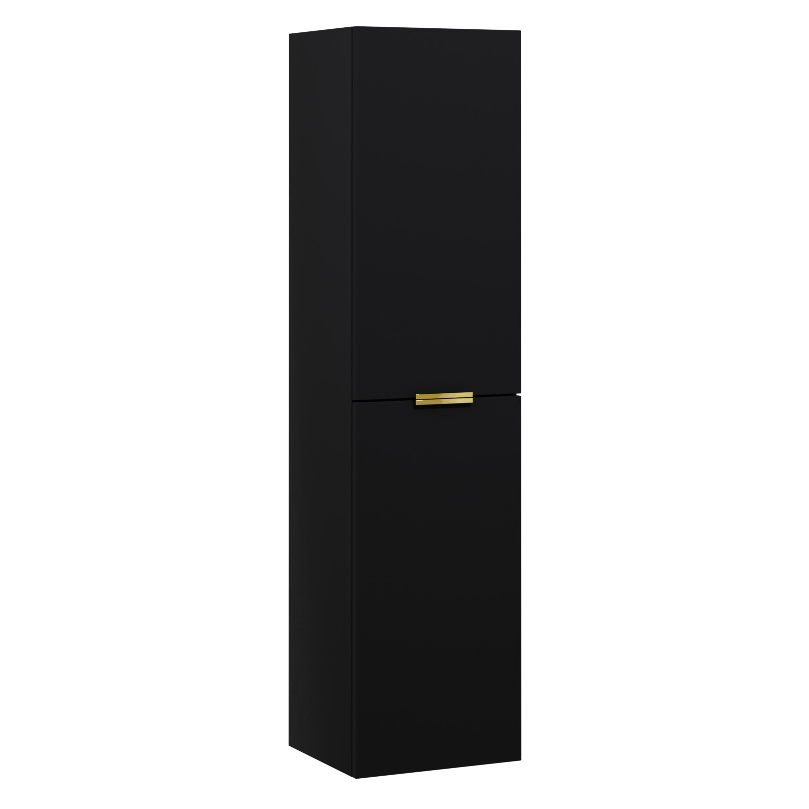 Palermo Matt Black 35 függesztett fali magasszekrény, szálcsiszolt arany fogantyúkkal