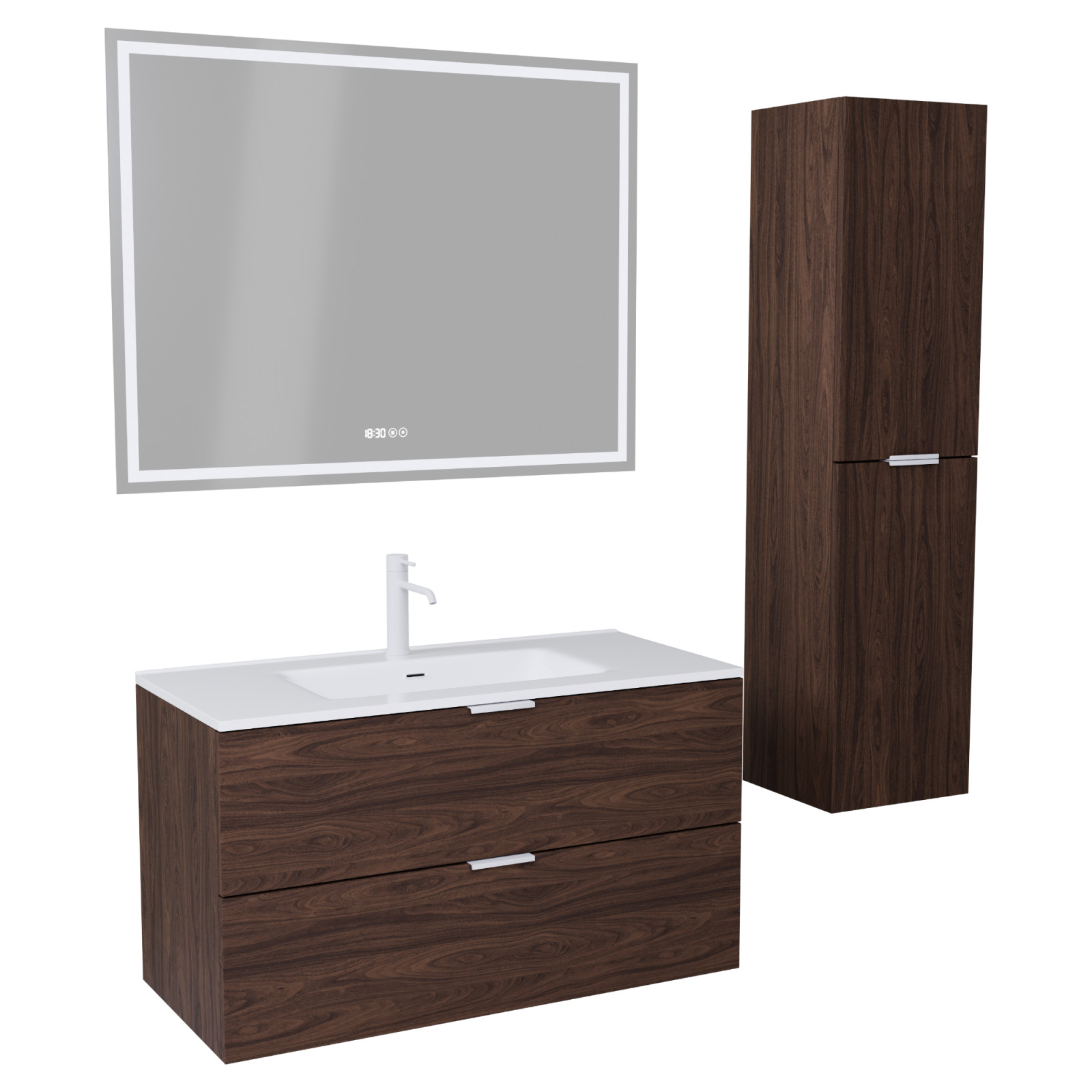 Szett tartalma: Mosdószekrény mosdóval, okos tükör, magasszekrény