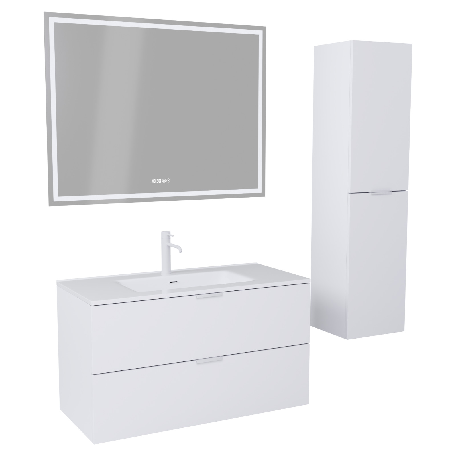 Palermo Matt White 100 komplett fürdőszoba bútor szett, matt fehér fogantyúkkal