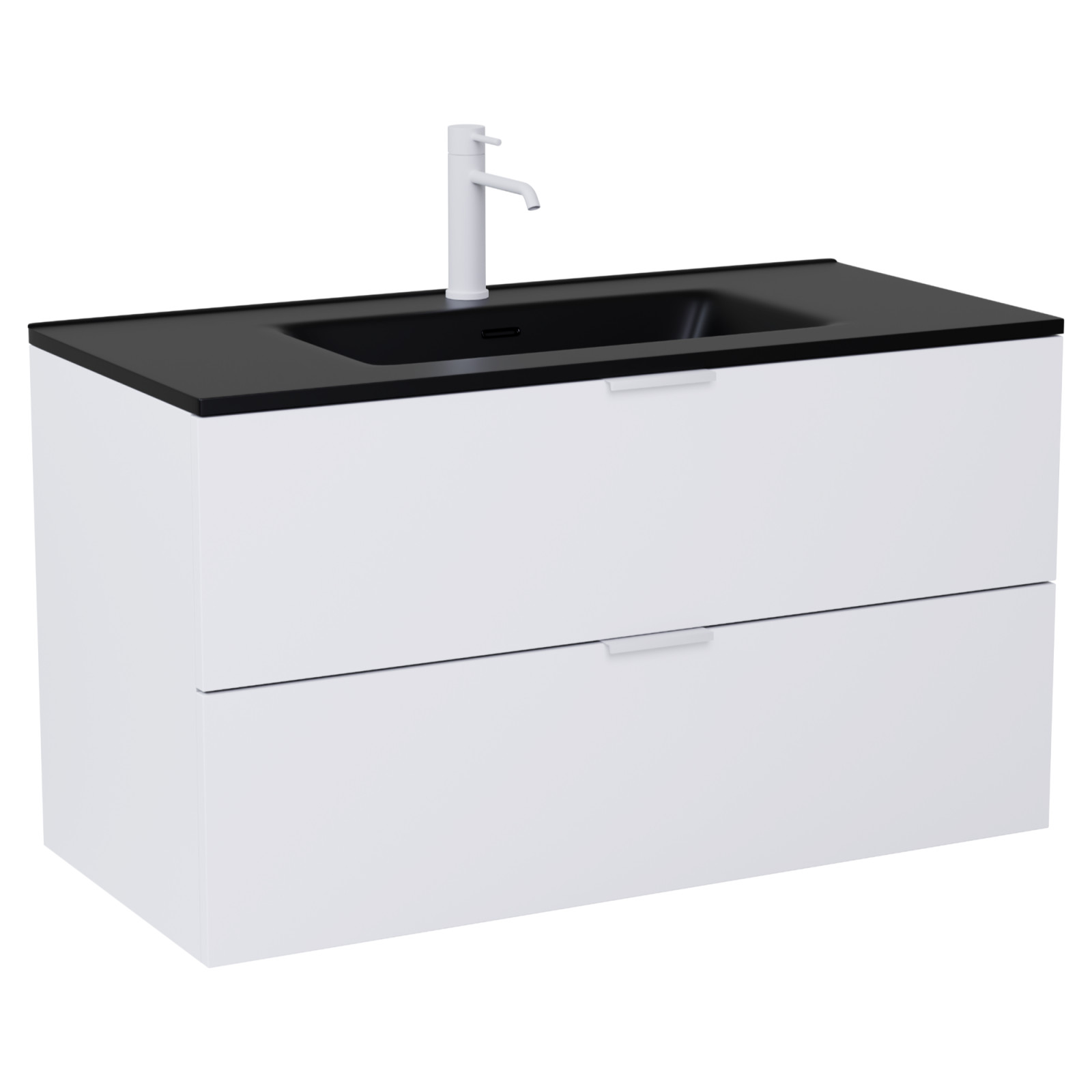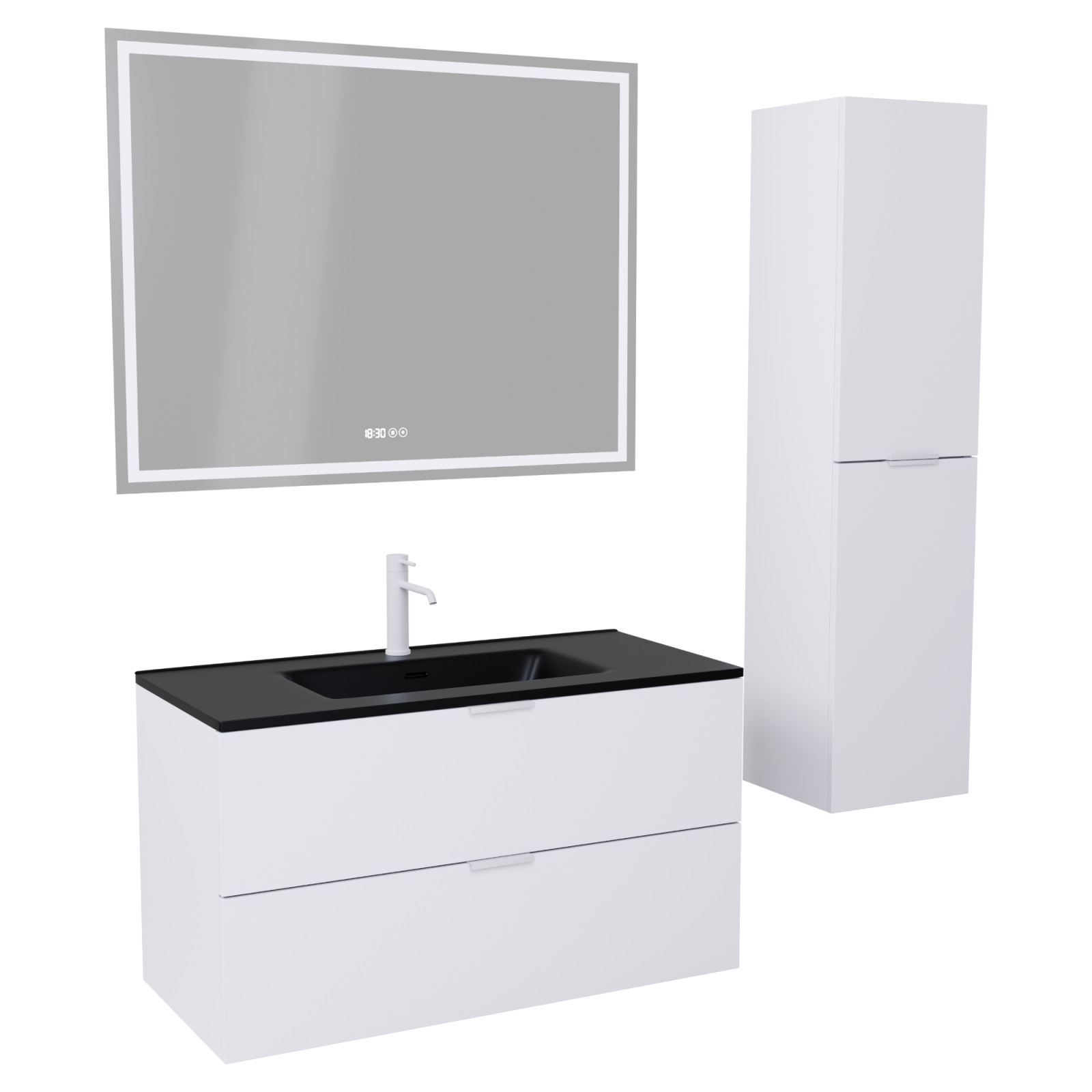 Palermo Matt White 100 komplett fürdőszoba bútor szett, matt fehér fogantyúkkal