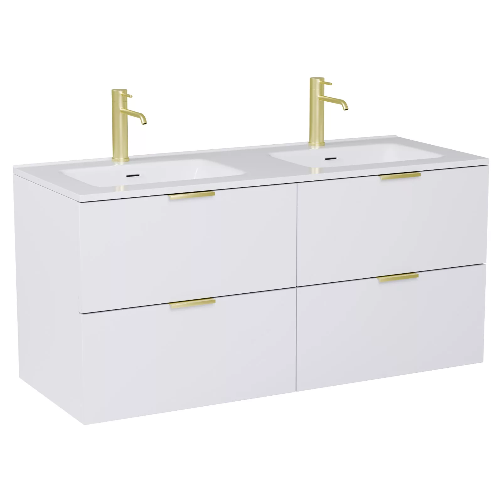 HD Palermo Matt White 120 fali mosdószekrény szálcsiszolt arany fogantyúkkal