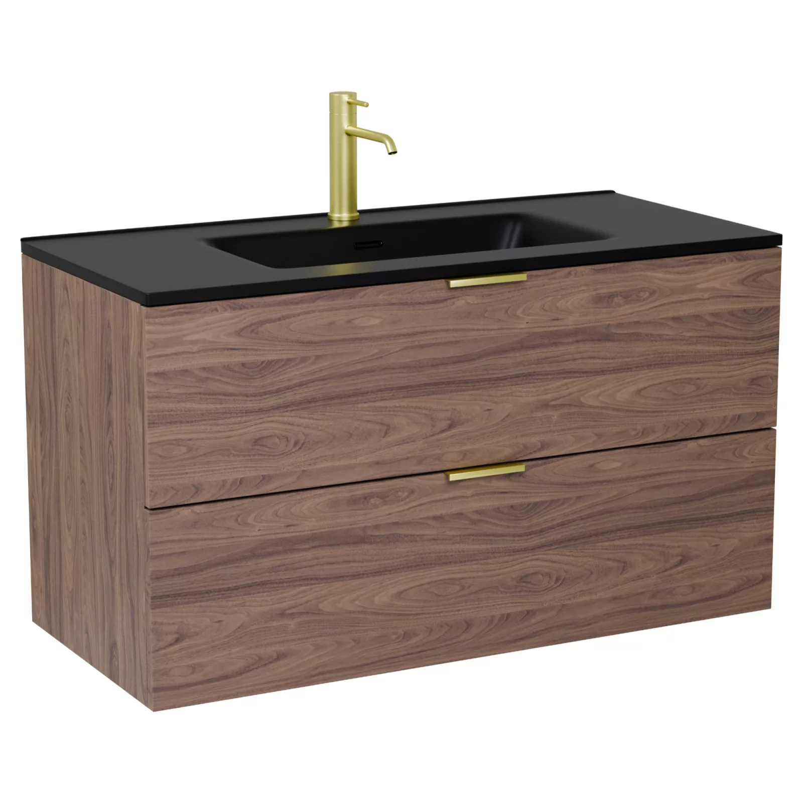 Palermo Oak 100 komplett fürdőszoba bútor, szálcsiszolt arany fogantyúkkal
