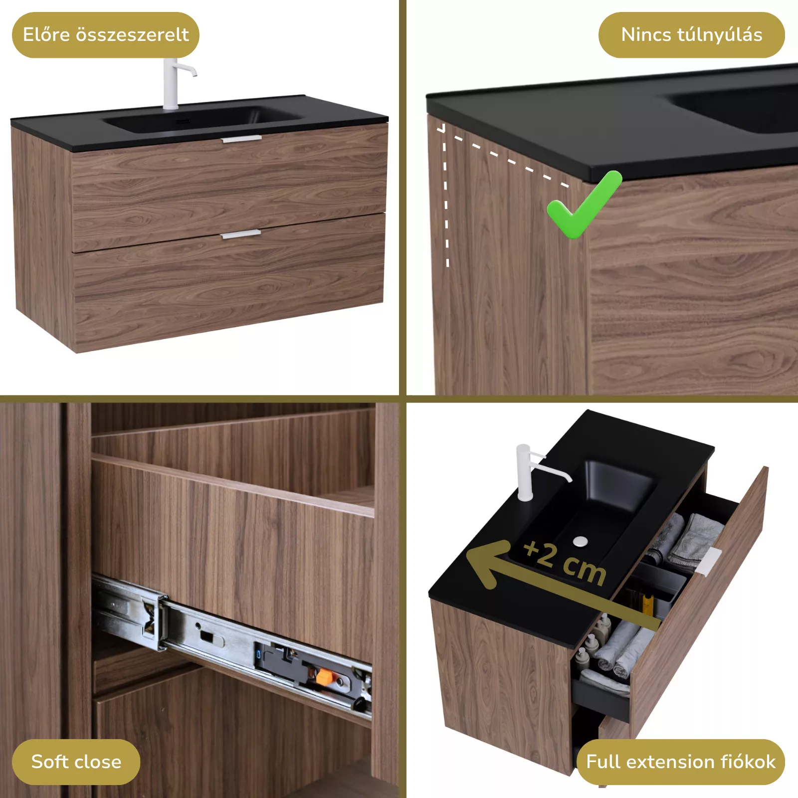 A bútort összeszerelve szállítjuk ki, így Önnek csak a mosdót és a fiók frontot kell ráhelyeznie!