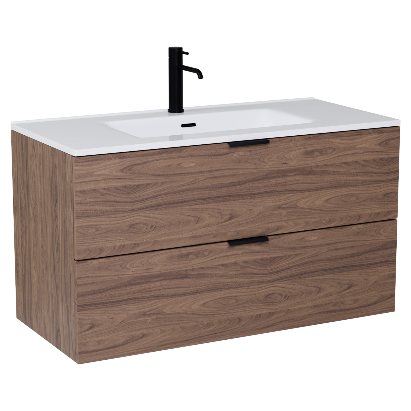 Palermo Oak 100 komplett fürdőszoba bútor szett, matt fekete fogantyúkkal