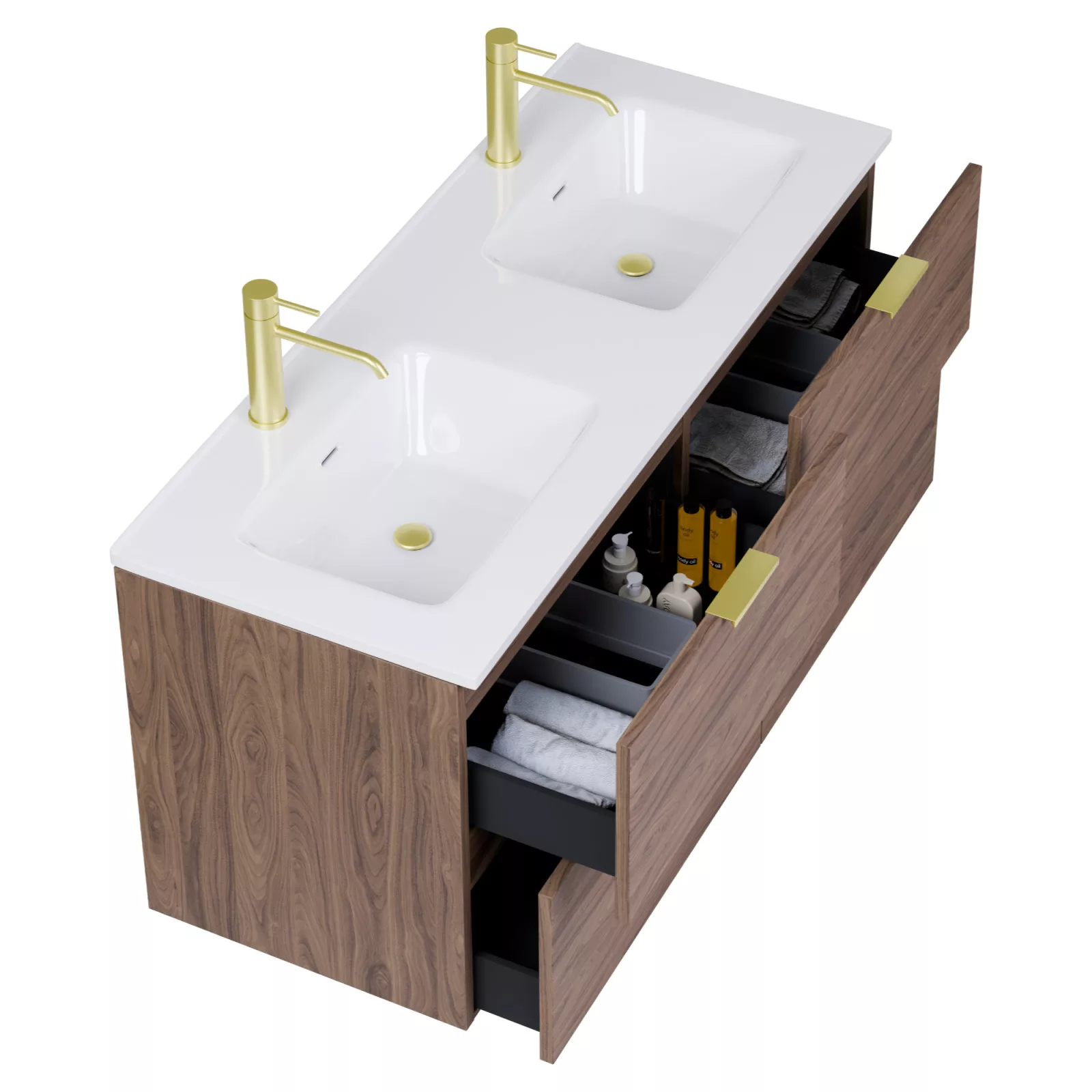 Palermo Oak 120 komplett fürdőszoba bútor szett, szálcsiszolt arany fogantyúkkal