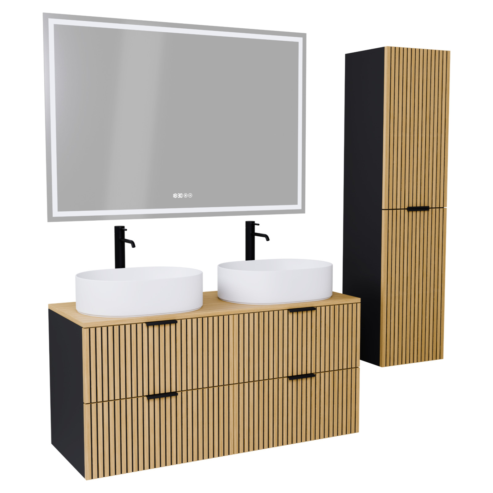 Napjainkban a praktikum mellett a fürdőszoba esztétikus megjelenése is fontos szempont. A függesztett bútorok egyre elterjedtebbé válnak, mivel számos előnnyel rendelkeznek, ide sorolható a modern, könnyed megjelenés és az egyszerű tisztítás . A függesztett fürdőszobai bútorok a klasszikus és modernebb stílusú fürdőszobákban is megállják a helyüket egyaránt. Nagyfokú rugalmasság jellemzi őket, mivel szinte bárhol elhelyezhetők a fürdőszobán belül. További előnyük, hogy soft close (csillapítós) zsanérral felszereltek, így becsukáskor az ajtó vagy fiók finoman záródik be, csökkentve a terhelést és növelve az élettartamot . A szekrény fehér és matt fekete mosdóval, illetve mosdópulttal is szabadon kombinálható ízlés szerint. A teljesség érdekében a mosdószekrényekhez illő LED okostükröt és magasszekrényt is választhatunk, hogy a fürdőszobában lévő bútorok egy szemet gyönyörködtető egységet alkossanak.
