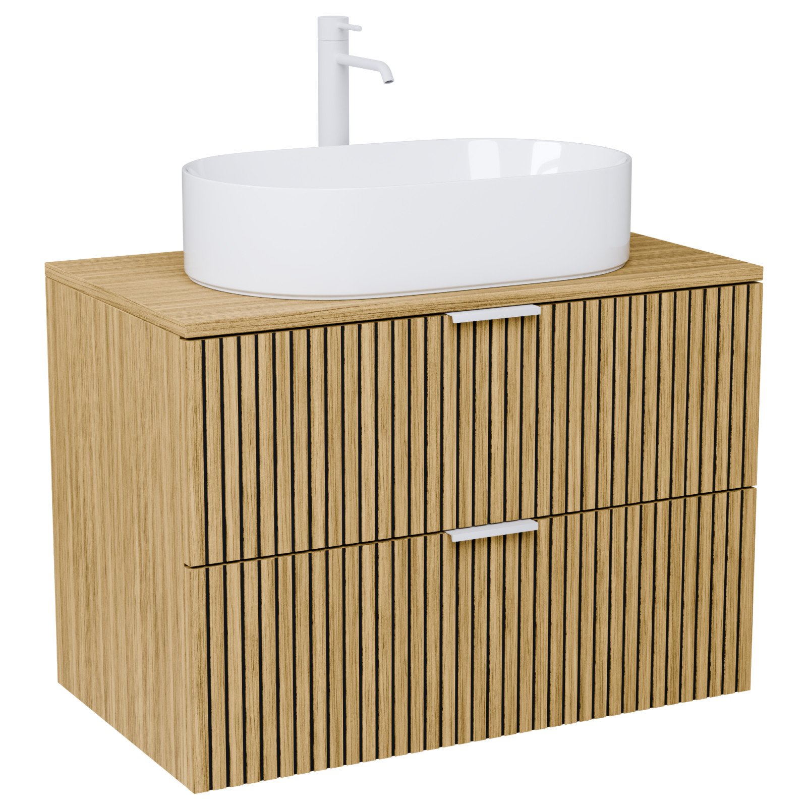 Palma Hickory 60 komplett fürdőszoba bútor, matt fehér fogantyúkkal