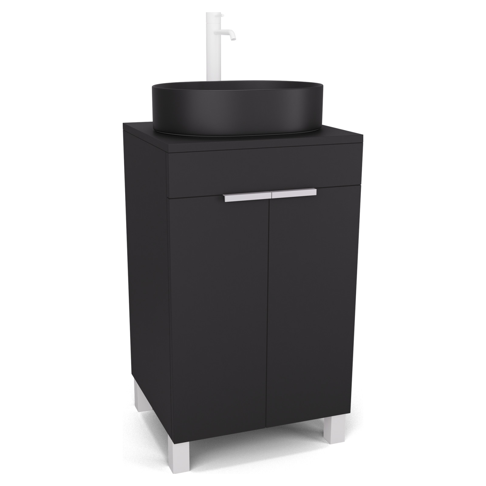 Paris Matt Black 50 mosdószekrény pulttal, matt fehér fogantyúkkal