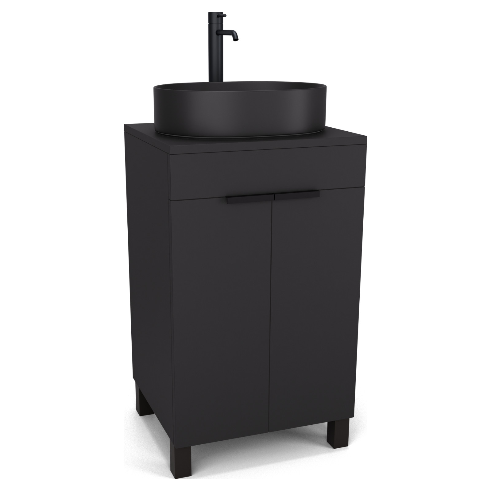 Paris Matt Black 50 mosdószekrény pulttal, matt fekete fogantyúkkal