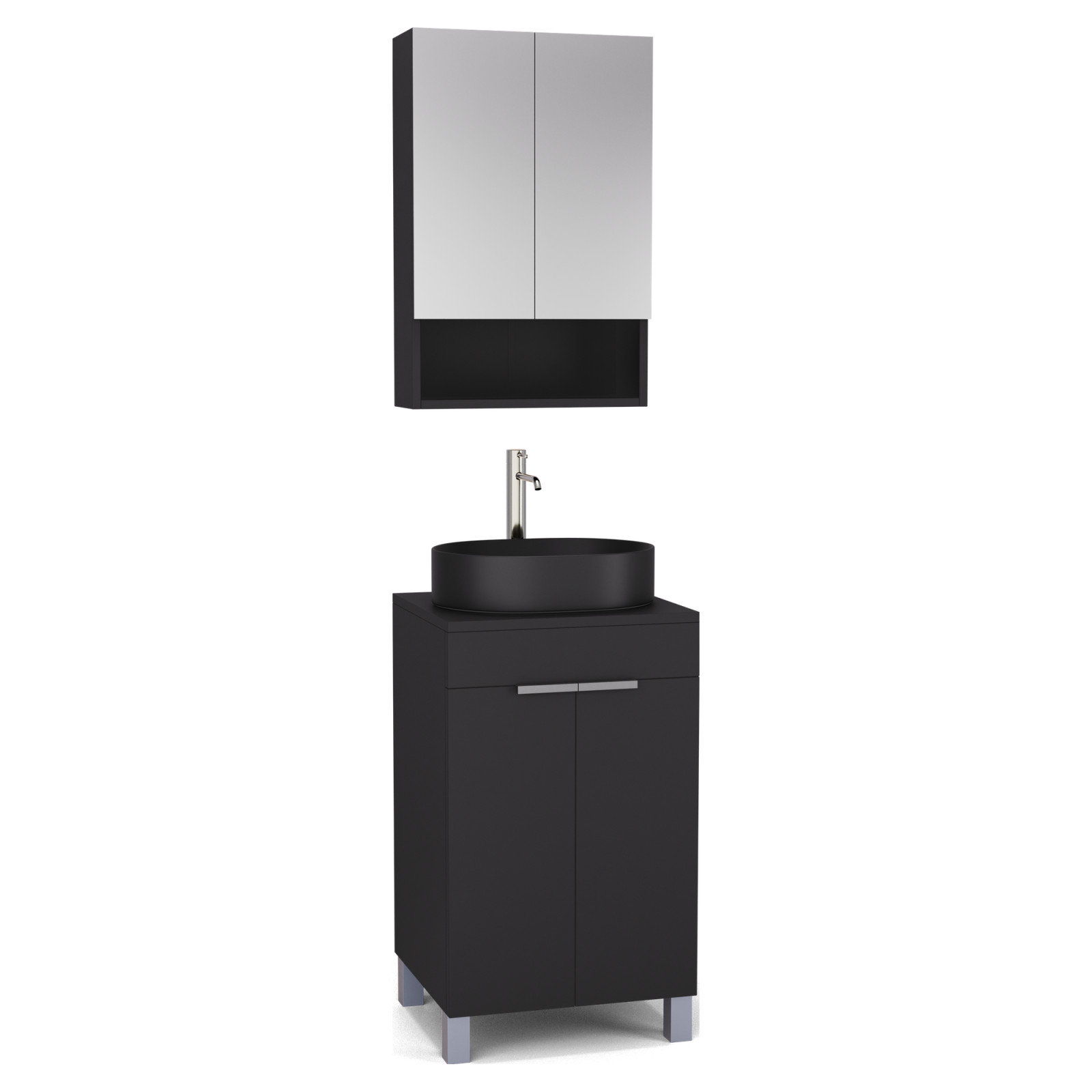 HD Paris Matt Black 50 komplett fürdőszoba bútor álló mosdószekrénnyel, szálcsiszolt króm elemekkel, fekete mosdópulttal és tükrös szekrénnyel
