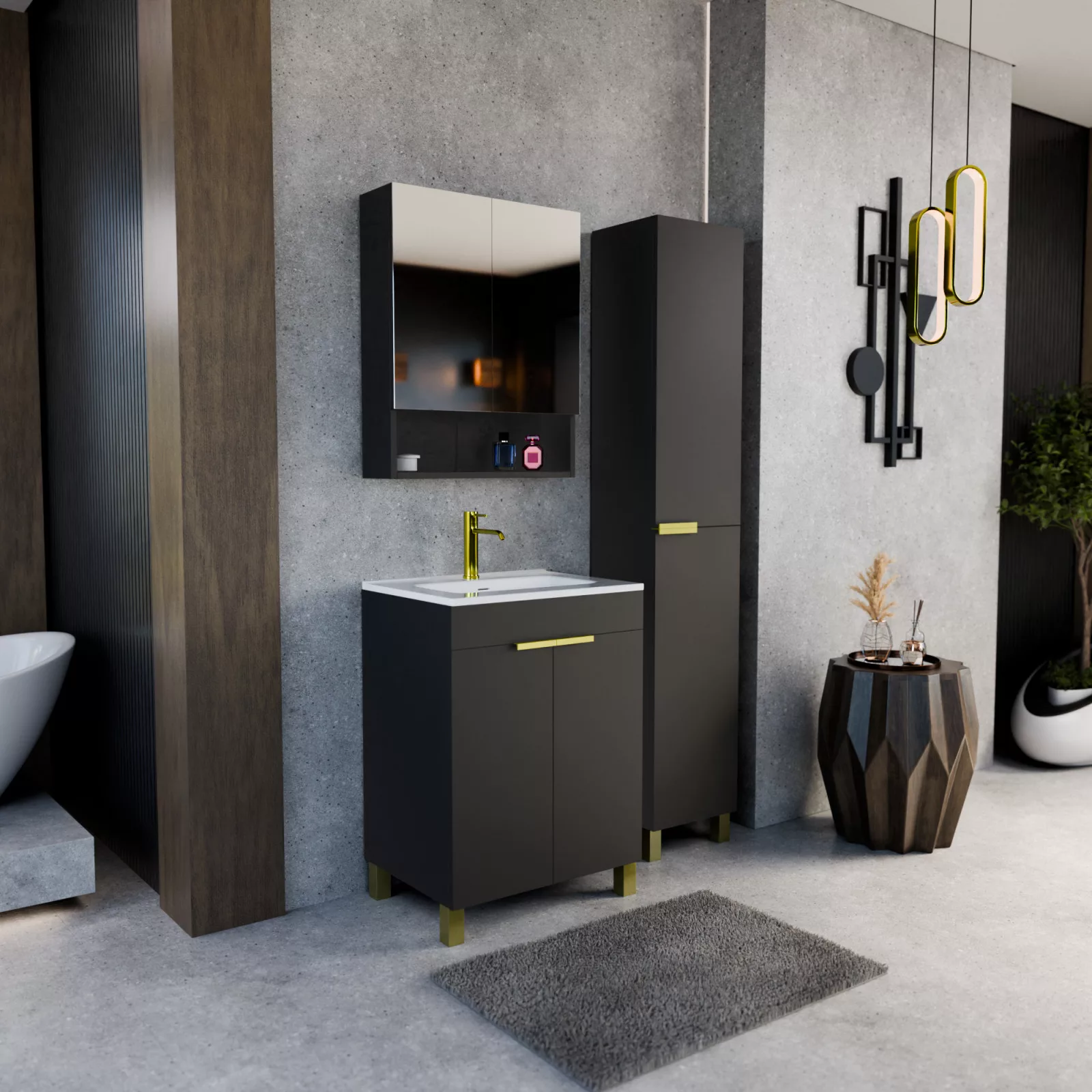 Napjainkban a praktikum mellett a fürdőszoba esztétikus megjelenése is fontos szempont. A lábon álló bútorok egyre elterjedtebbé válnak, mivel számos előnnyel rendelkeznek, ide sorolható a modern, könnyed megjelenés és az egyszerű tisztítás. A lábon álló fürdőszobai bútorok a klasszikus és modernebb stílusú fürdőszobákban is megállják a helyüket egyaránt. Nagyfokú rugalmasság jellemzi őket, mivel szinte bárhol elhelyezhetők a fürdőszobán belül. További előnyük, hogy soft close (csillapítós) zsanérral felszereltek, így  becsukáskor az ajtó vagy fiók finoman záródik be, csökkentve a terhelést és növelve az élettartamot. A szekrény fehér és matt fekete mosdóval, illetve mosdópulttal is szabadon kombinálható ízlés szerint. A teljesség érdekében a mosdószekrényekhez illő tükrös szekrényt és magas szekrényt is választhatunk, hogy a fürdőszobában lévő bútorok egy szemet gyönyörködtető egységet alkossanak.