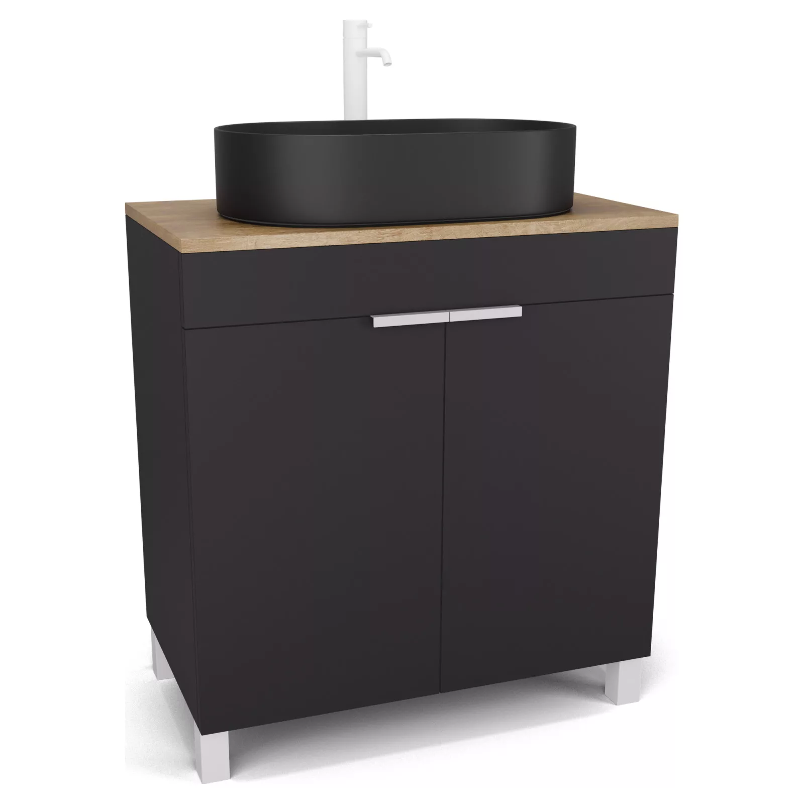HD Paris Matt Black 80 álló mosdószekrény tölgyfa színű mosdópulttal és matt fehér elemekkel