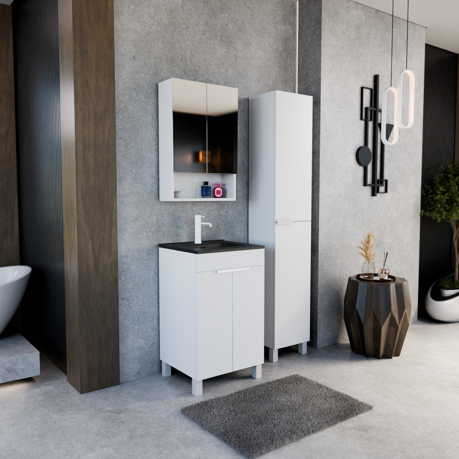 HD Paris Matt White 50 álló mosdószekrény matt fehér elemekkel és matt fekete slim mosdóval