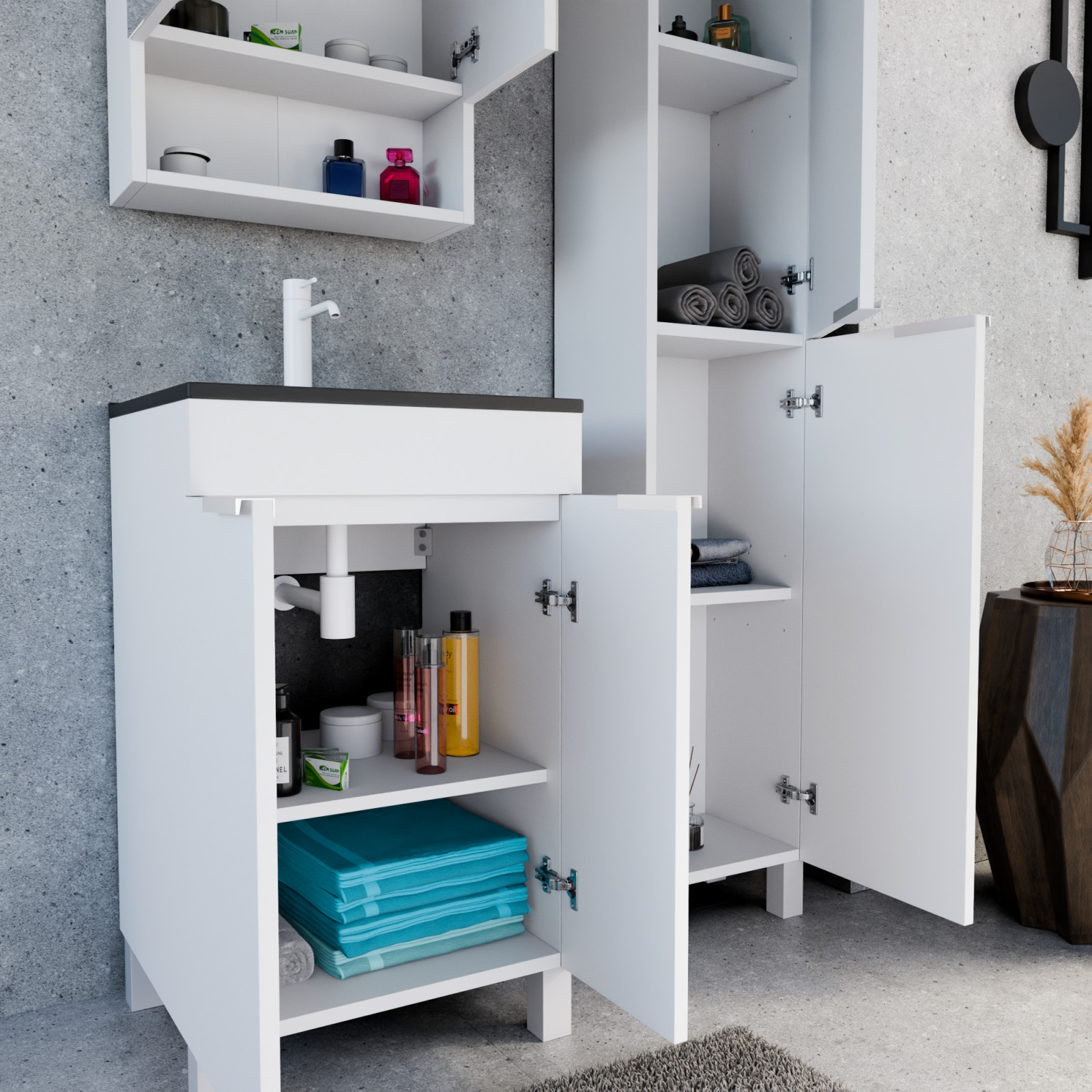 Napjainkban a praktikum mellett a fürdőszoba esztétikus megjelenése is fontos szempont. A lábon álló bútorok egyre elterjedtebbé válnak, mivel számos előnnyel rendelkeznek, ide sorolható a modern, könnyed megjelenés és az egyszerű tisztítás. A lábon álló fürdőszobai bútorok a klasszikus és modernebb stílusú fürdőszobákban is megállják a helyüket egyaránt. Nagyfokú rugalmasság jellemzi őket, mivel szinte bárhol elhelyezhetők a fürdőszobán belül. További előnyük, hogy soft close (csillapítós) zsanérral felszereltek, így  becsukáskor az ajtó vagy fiók finoman záródik be, csökkentve a terhelést és növelve az élettartamot. A szekrény fehér és matt fekete mosdóval, illetve mosdópulttal is szabadon kombinálható ízlés szerint. A teljesség érdekében a mosdószekrényekhez illő tükrös szekrényt és magas szekrényt is választhatunk, hogy a fürdőszobában lévő bútorok egy szemet gyönyörködtető egységet alkossanak.