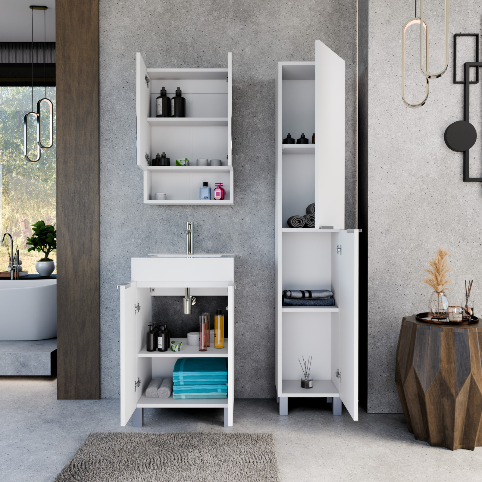 A Paris bútor család szettben is kapható. A mosdószekrény hozzáillő tükrös szekrénnyel és magas szekrénnyel kiváló komplett fürdőszoba bútor szett lehet bármilyen fürdőszobába.