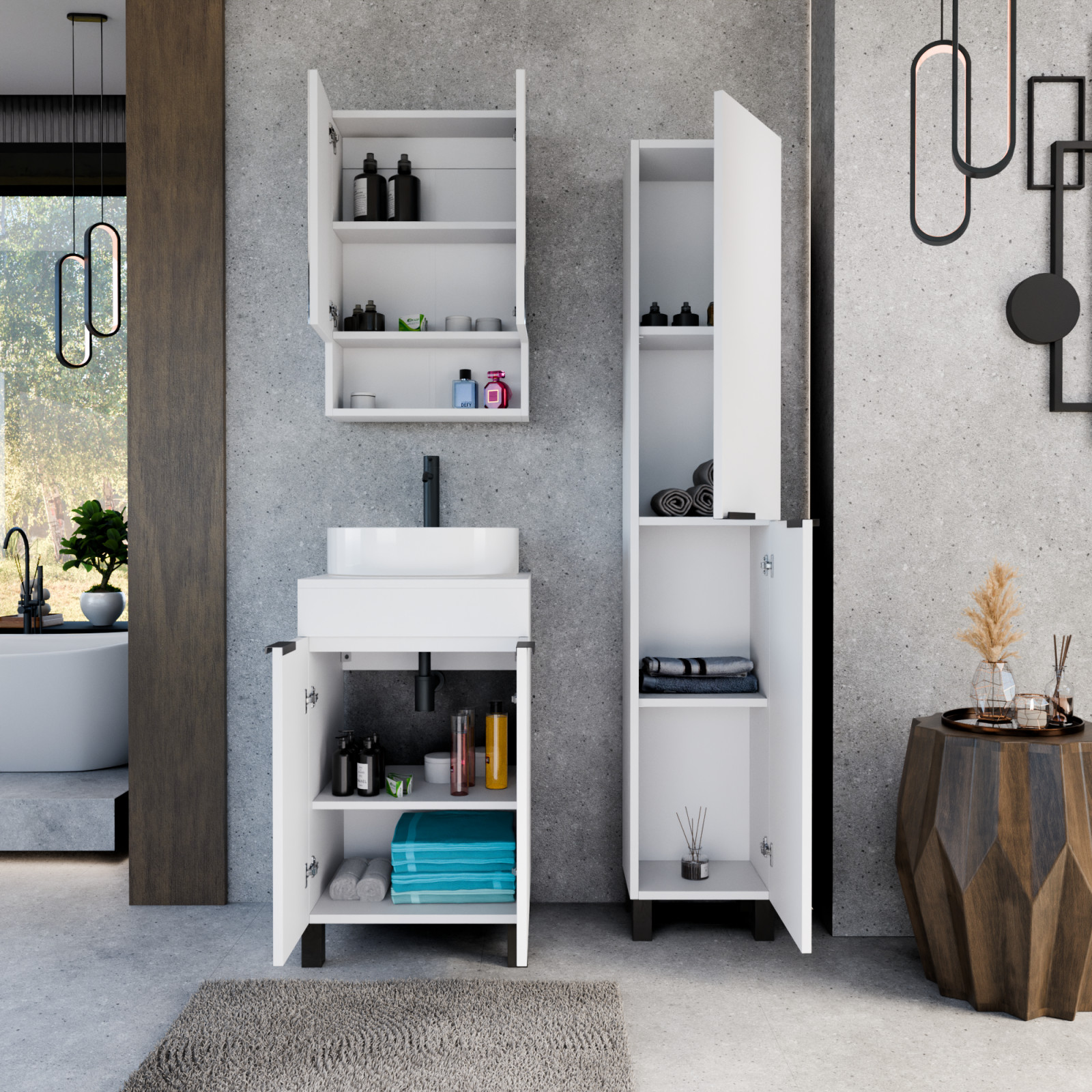 • Szett tartalma: Mosdószekrény mosdópulttal (A mosdókagyló és a csaptelep nem tartozék!), tükrös szekrény