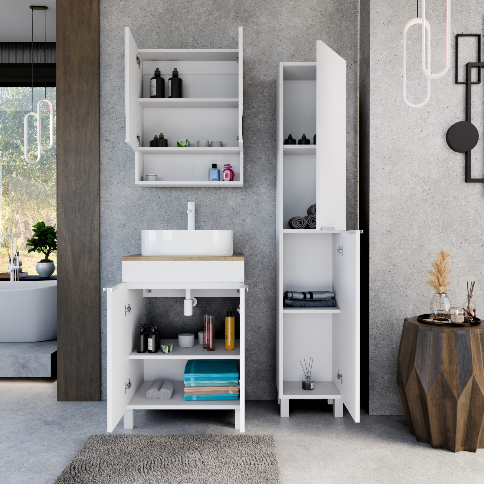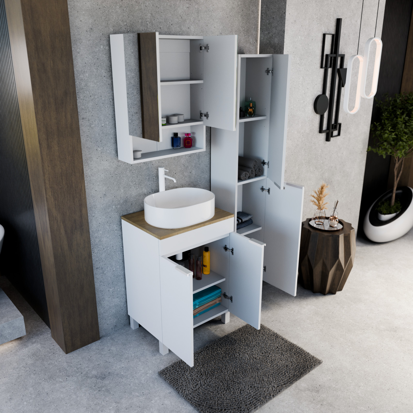 • Szett tartalma: Mosdószekrény mosdópulttal (A mosdókagyló és a csaptelep nem tartozék!)