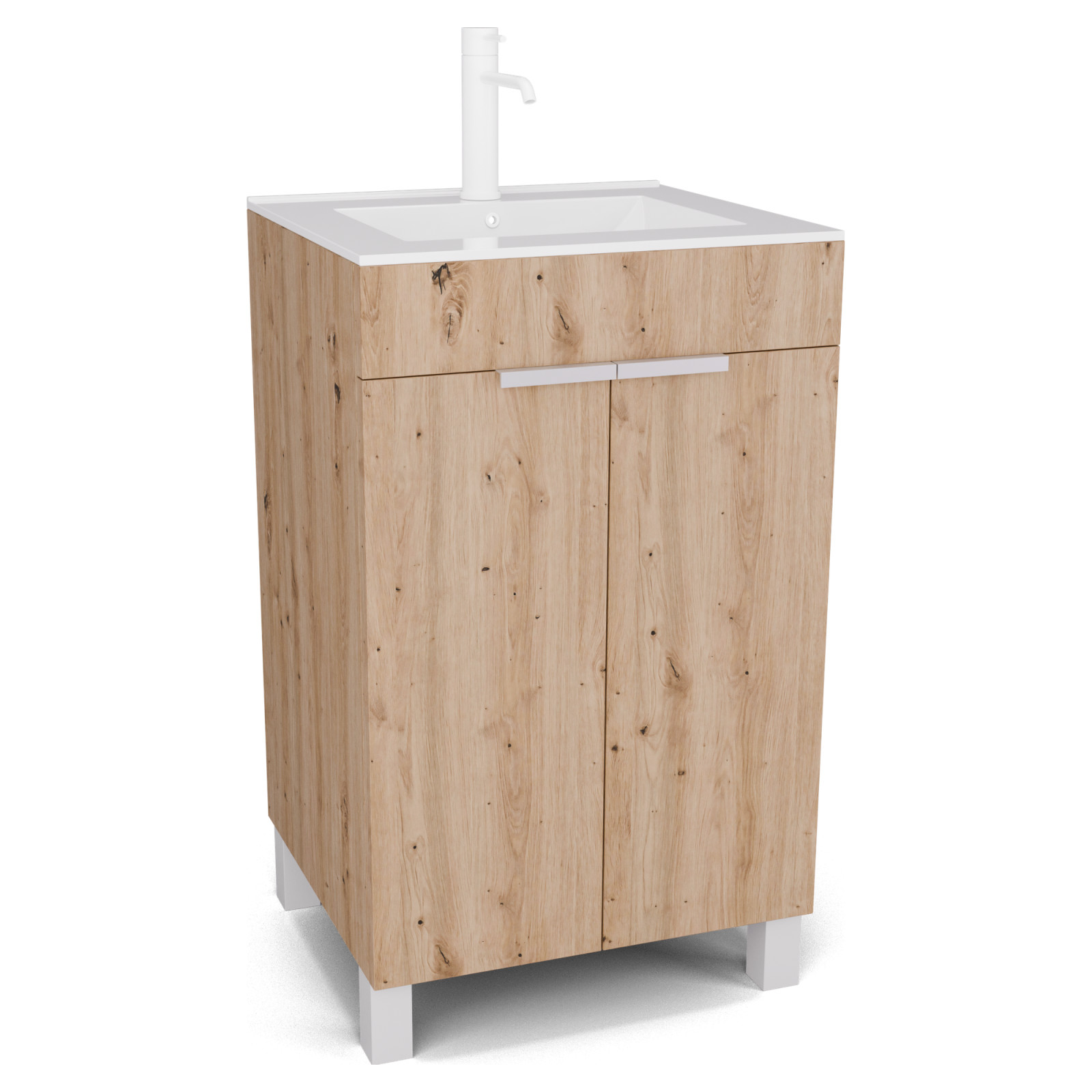 Paris Oak 50 mosdószekrény, matt fehér fogantyúkkal és lábakkal