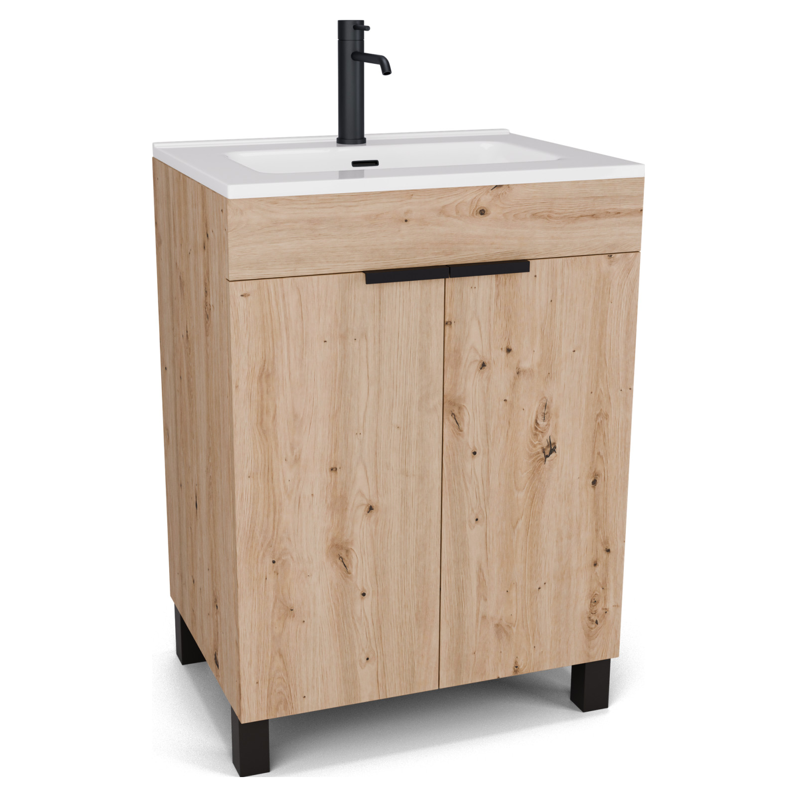 Paris Oak 60 mosdószekrény, matt fekete fogantyúkkal és lábakkal