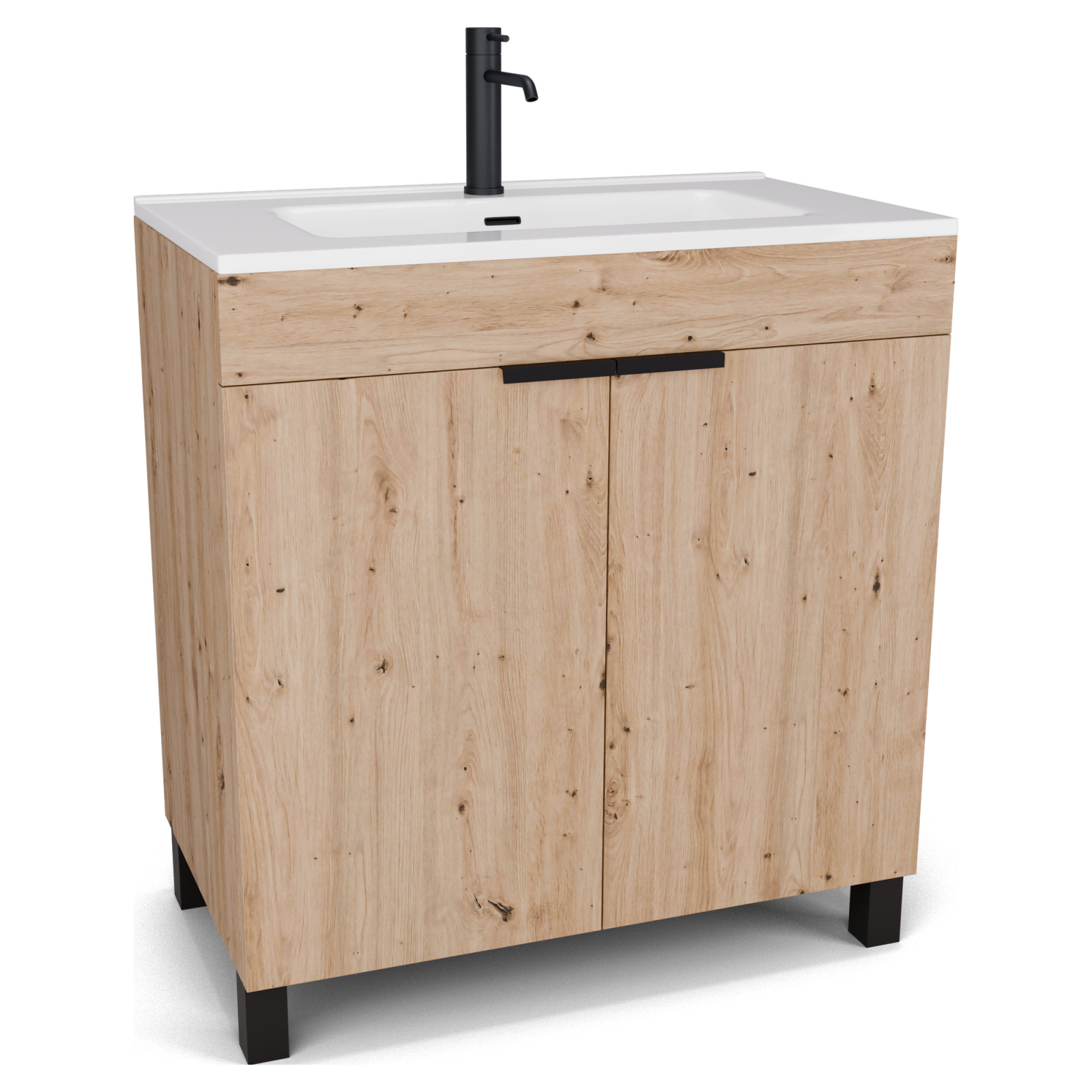Paris Oak 80 mosdószekrény, matt fekete fogantyúkkal és lábakkal