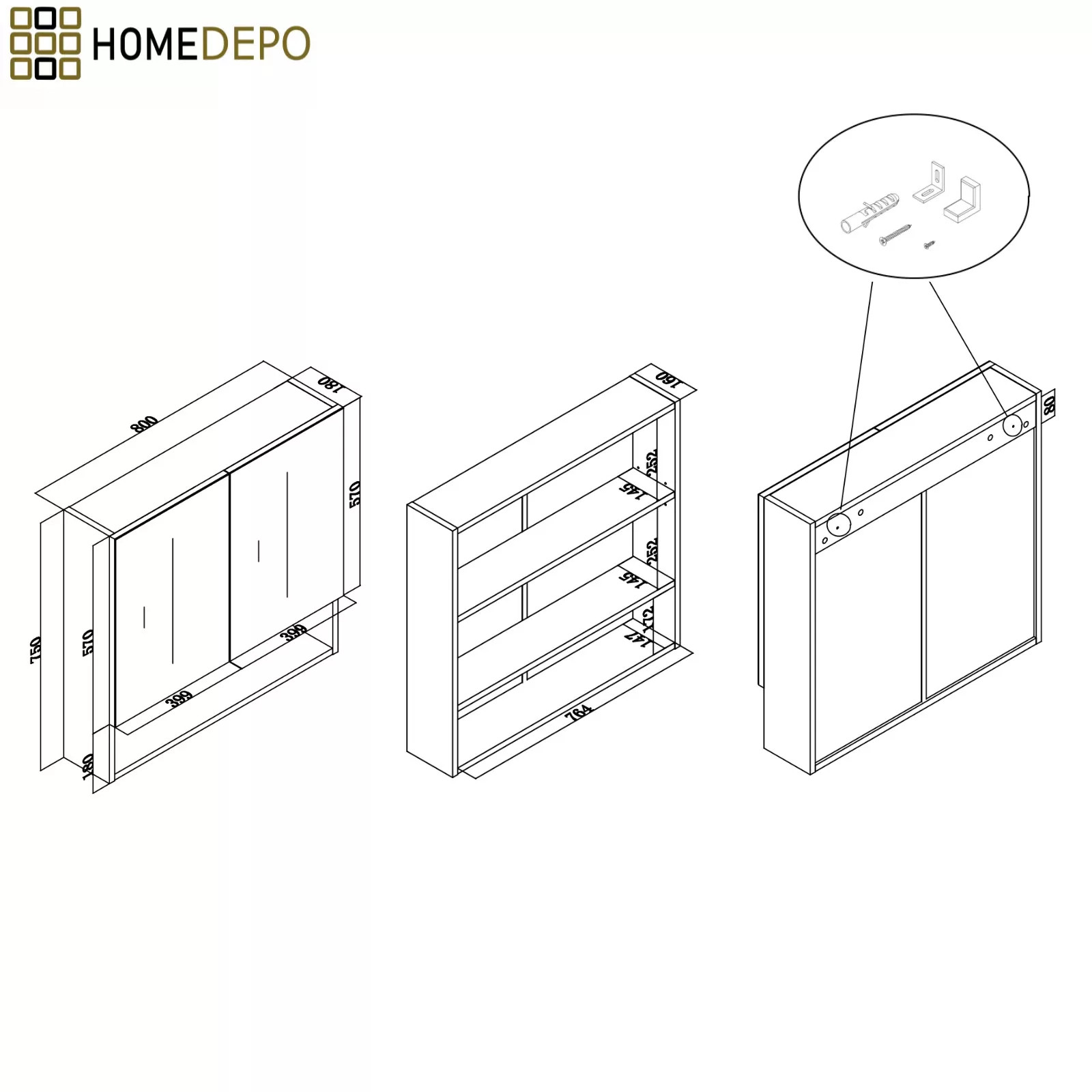 • Tükrösszekrény méret: 80x75x18 cm