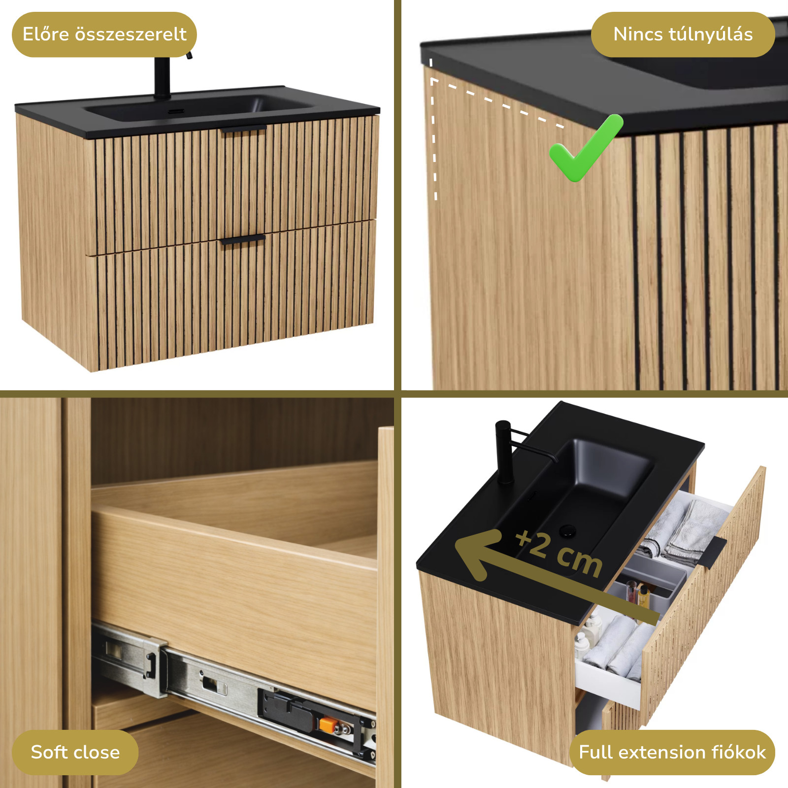 A bútort összeszerelve szállítjuk ki, így Önnek csak a mosdót és a fiók frontot kell ráhelyeznie!