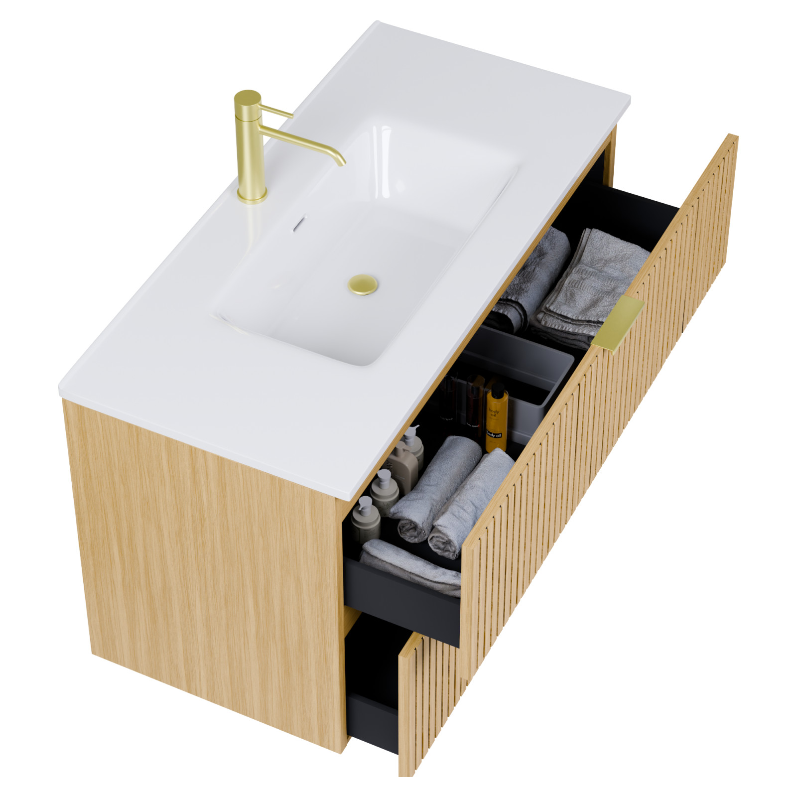 A bútor előre összerelt állapotban szállítjuk, így Önnek nincs más teendője már vele, csak fel kell rögzíteni a falra és fehelyezni a mosdót, illetve a fiók frontot.