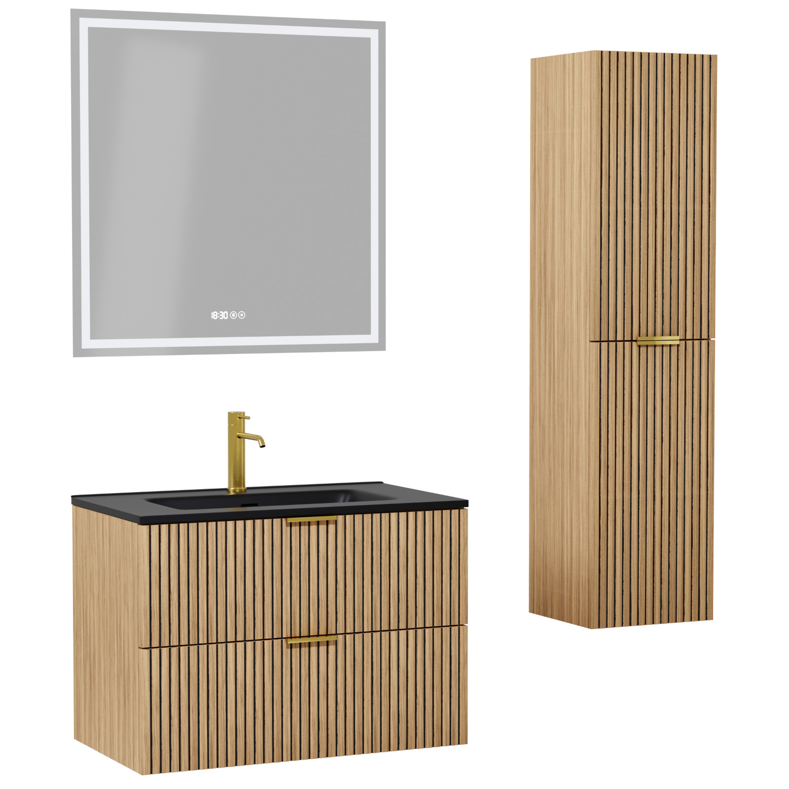 Parma Hickory 60 komplett fürdőszoba bútor szett, szálcsiszolt arany fogantyúkkal