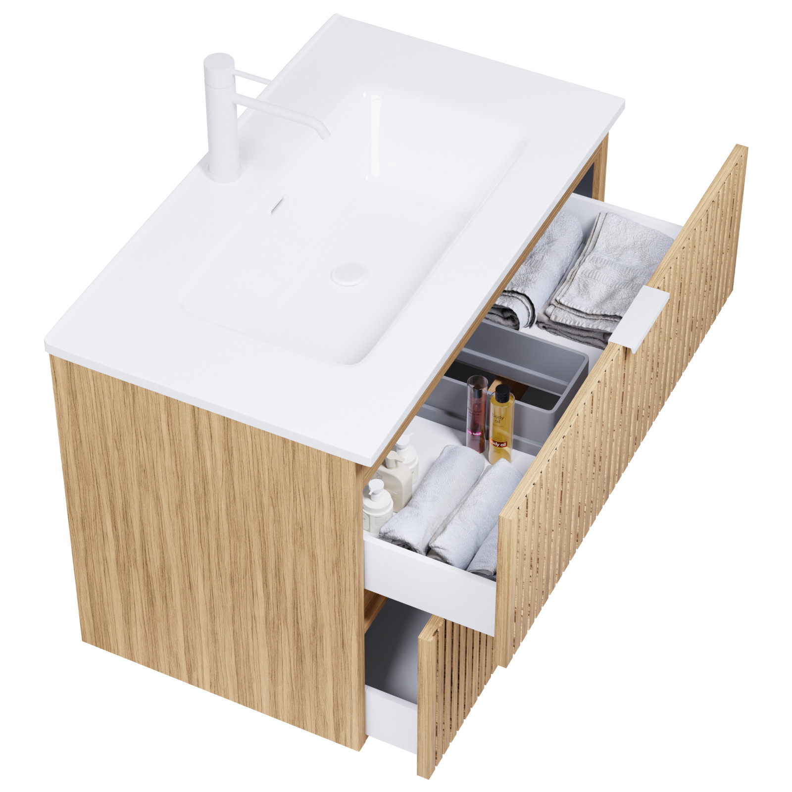 A bútor előre összerelt állapotban szállítjuk, így Önnek nincs más teendője már vele, csak fel kell rögzíteni a falra és fehelyezni a mosdót, illetve a fiók frontot.