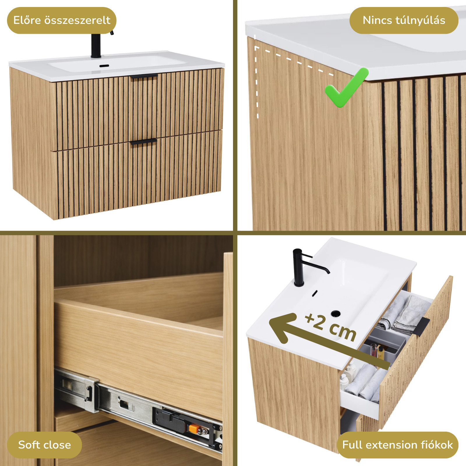 A bútor előre összerelt állapotban szállítjuk, így Önnek nincs más teendője már vele, csak fel kell rögzíteni a falra és fehelyezni a mosdót, illetve a fiók frontot.