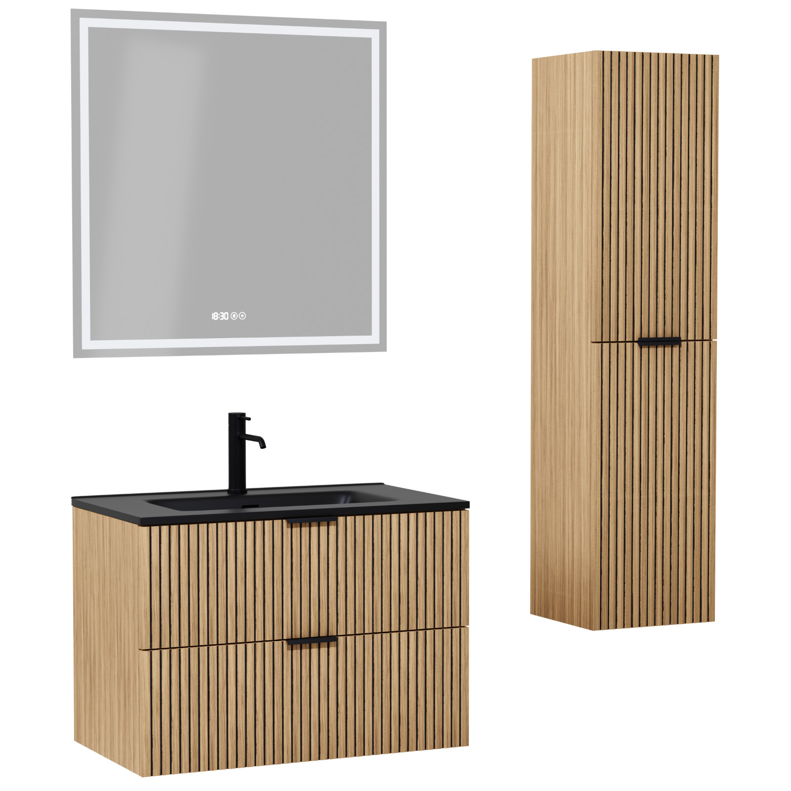 Parma Hickory 60 komplett fürdőszoba bútor szett, matt fekete fogantyúkkal