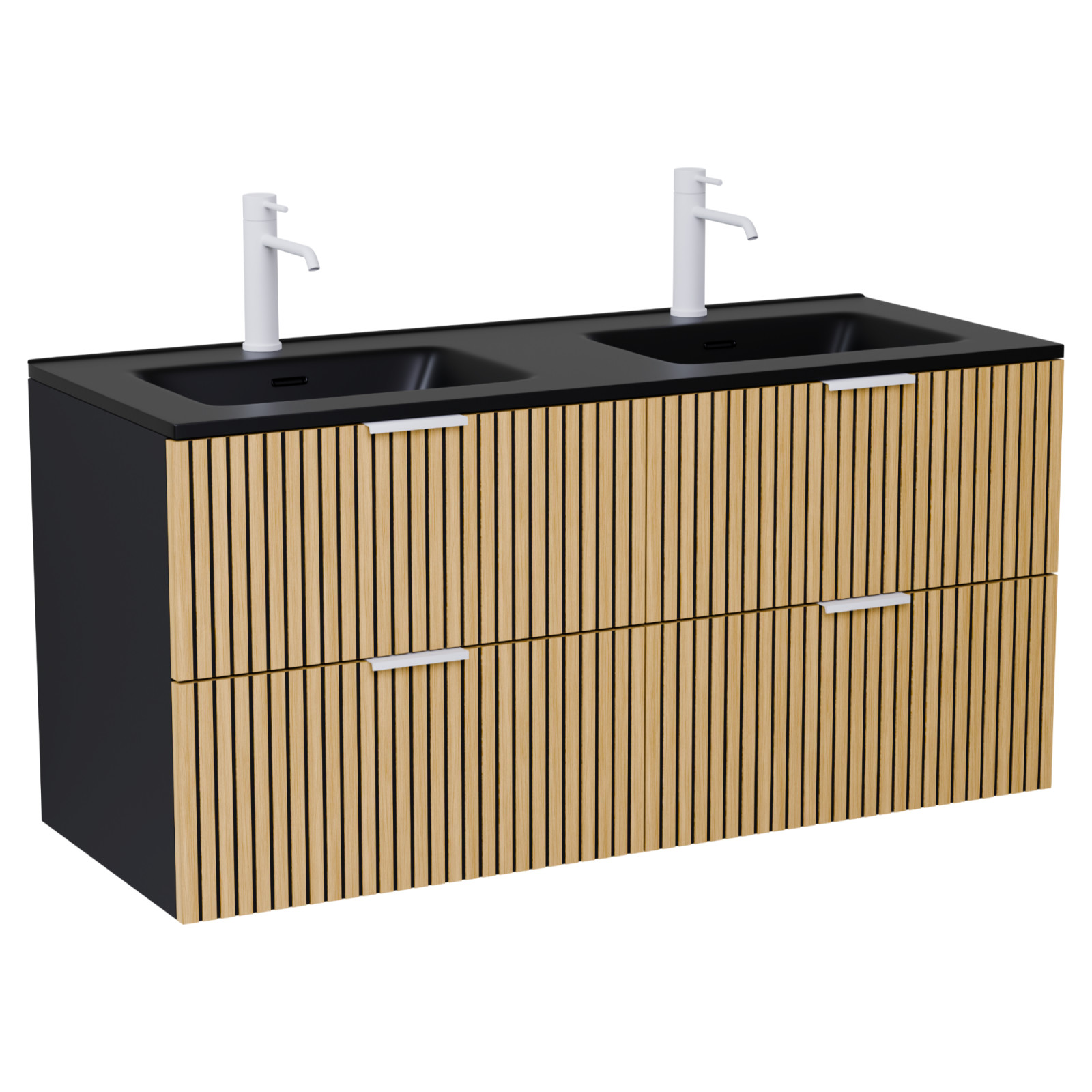 HD Parma Matt Black 120 fali mosdószekrény matt fehér fogantyúkkal és matt fekete slim mosdóval