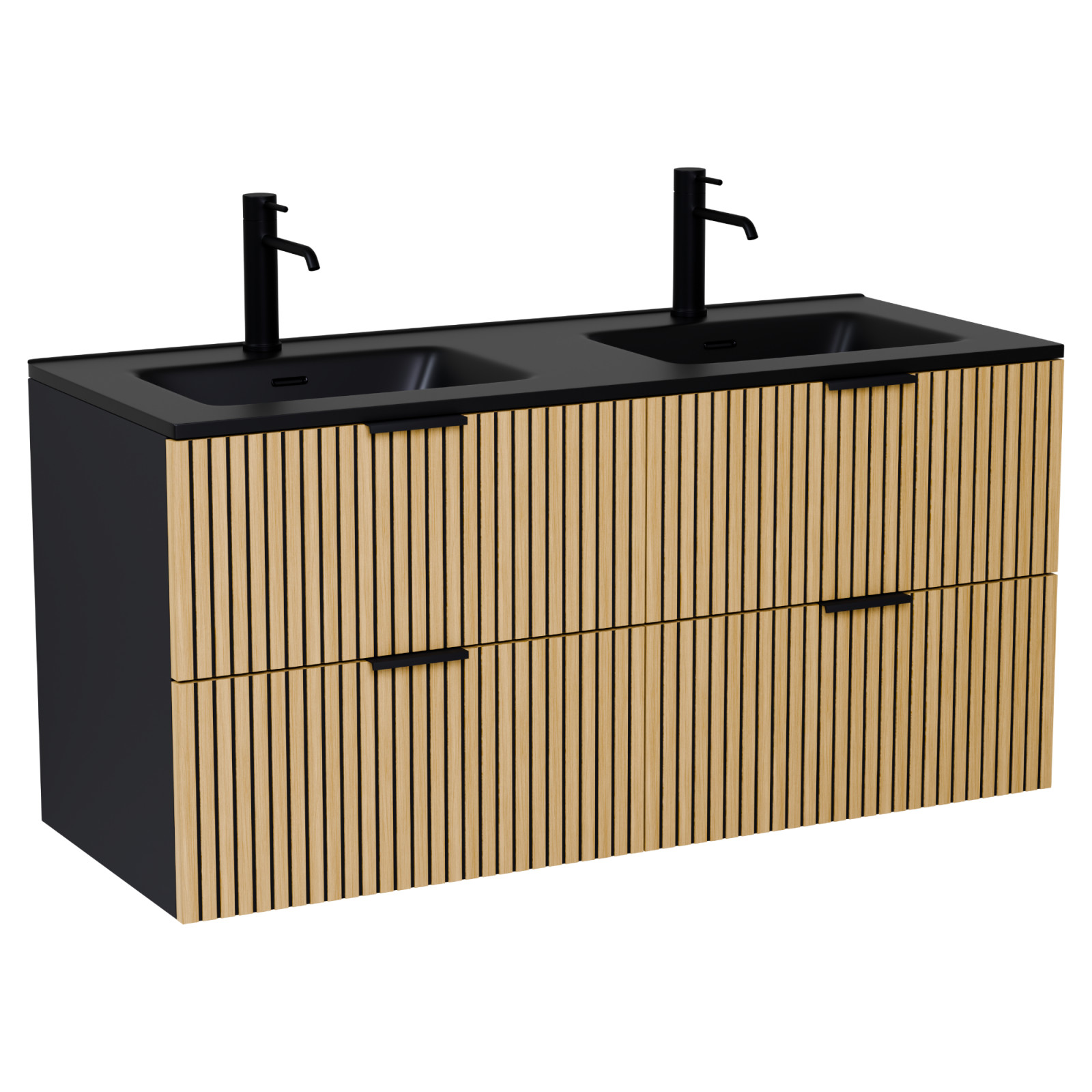 Parma Matt Black 120 mosdószekrény mosdóval és matt fekete fogantyúkkal
