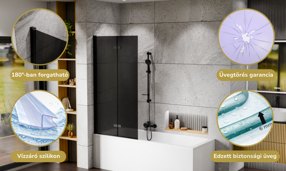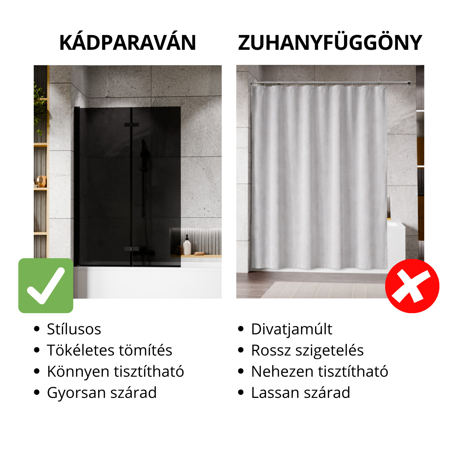 HD Prime Black 100x150 kihajtható 2 szárnyú kádparaván