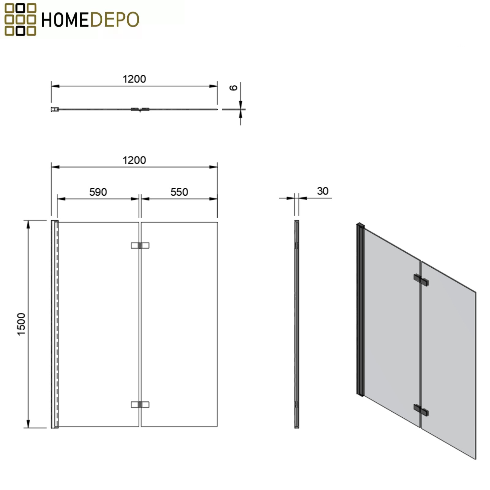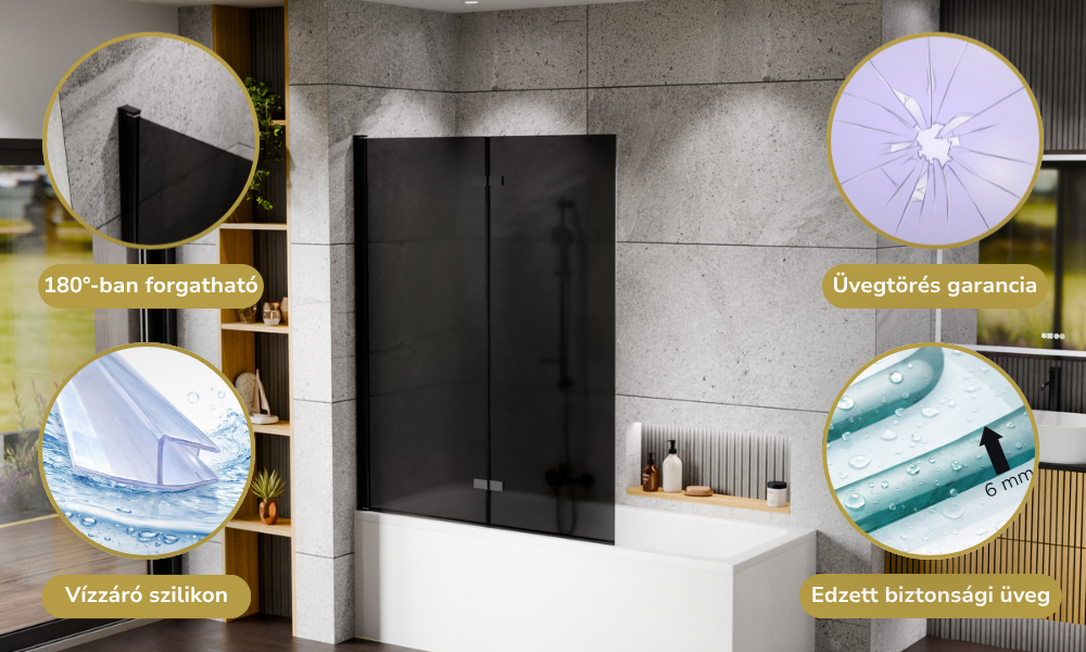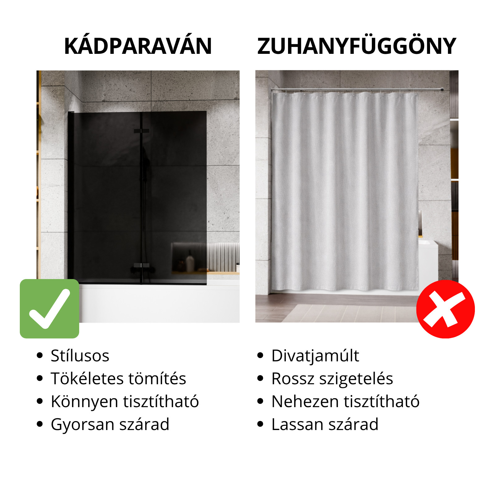 HD Prime Black 120x150 kihajtható 3 szárnyú kádparaván