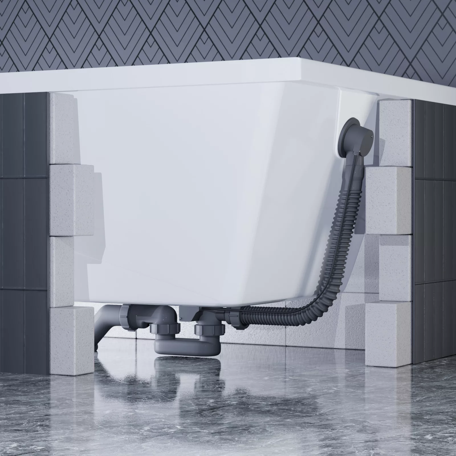 Tartozékként egy magas minőségű szifon is jár a készlethez, amely biztosítja a szagmentes működést és a hatékony vízelvezetést fürdőkádja számára.