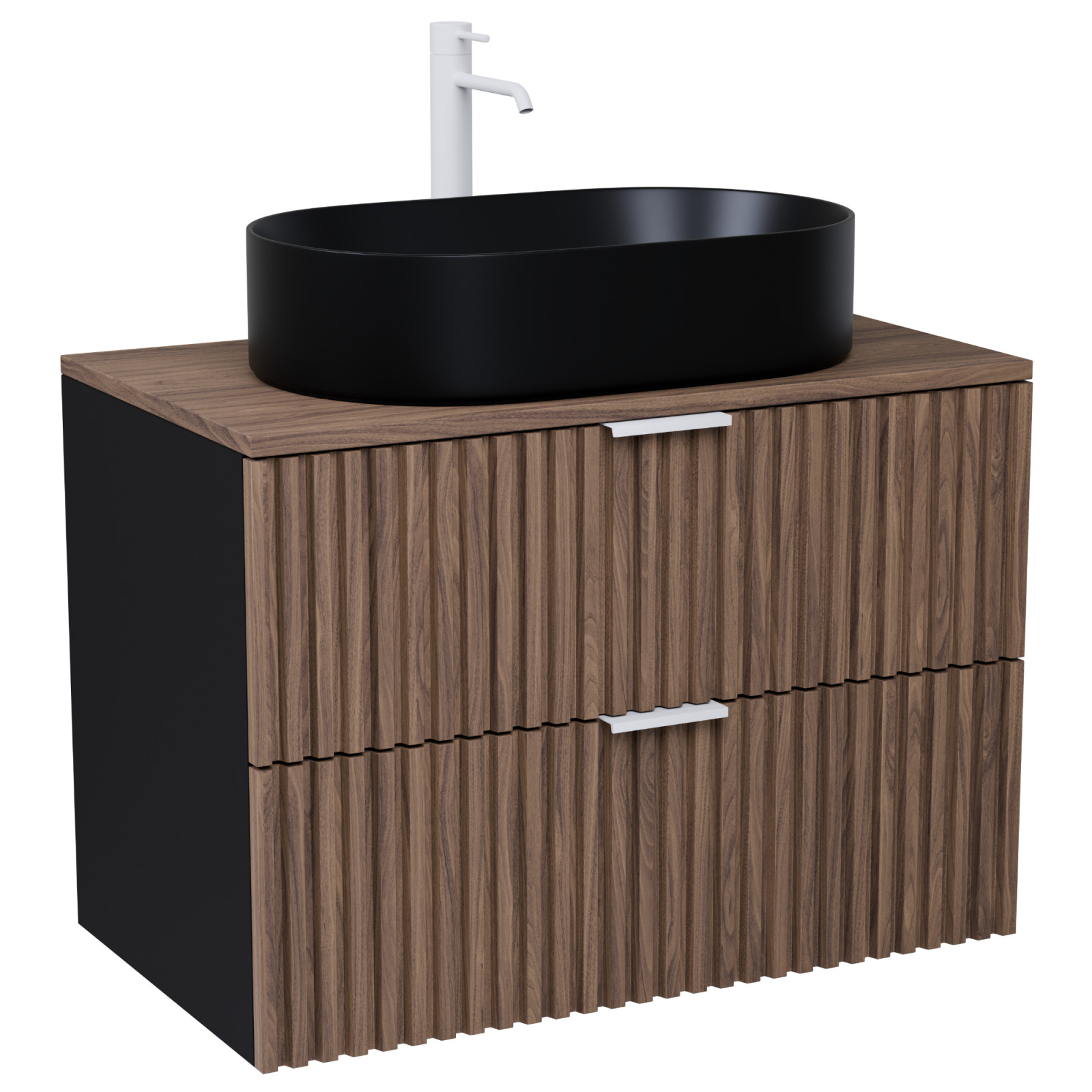 Rapallo Black-Oak 60 mosdószekrény pulttal, matt fehér fogantyúkkal
