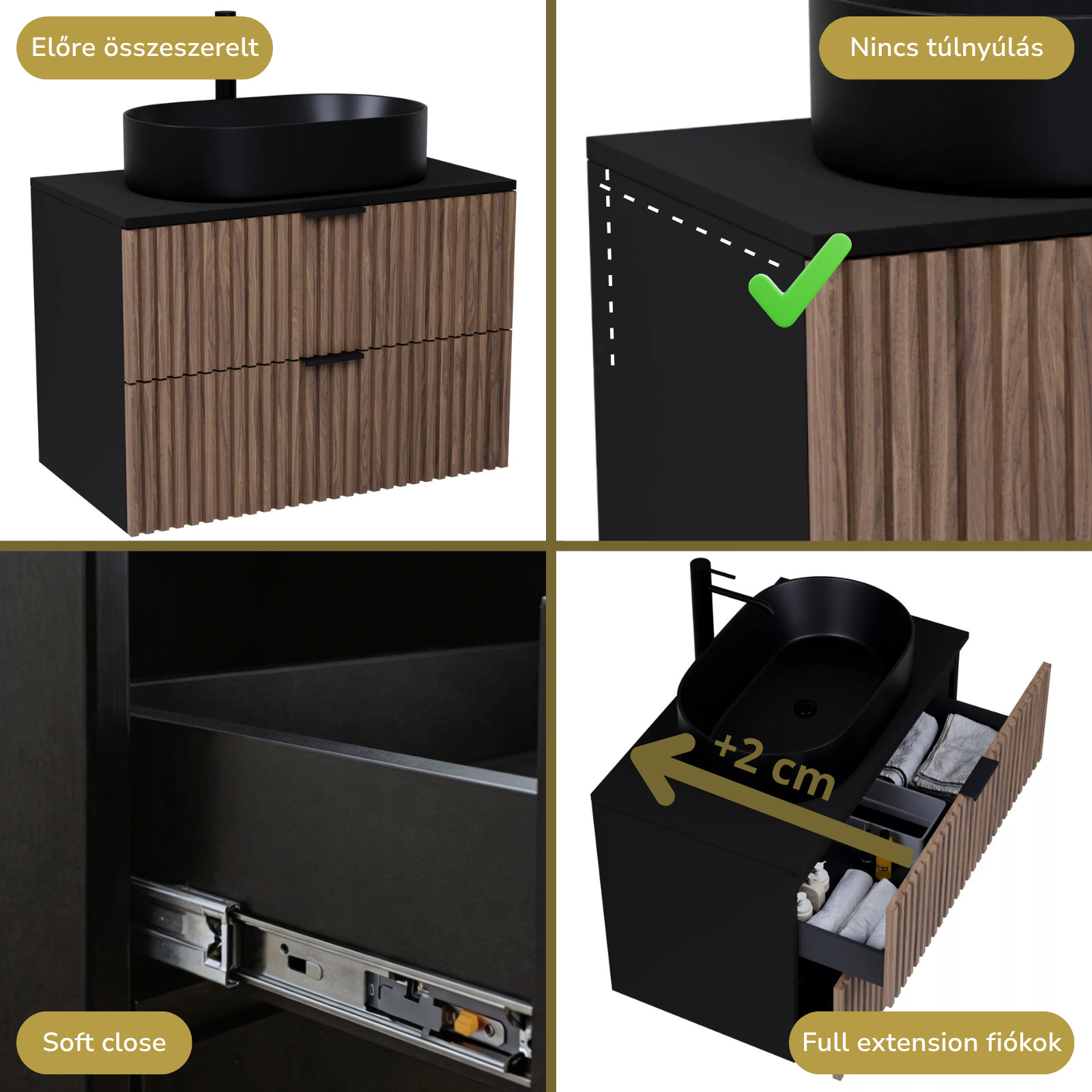 Rapallo Black-Oak 80 komplett fürdőszoba bútor szett, matt fekete fogantyúkkal
