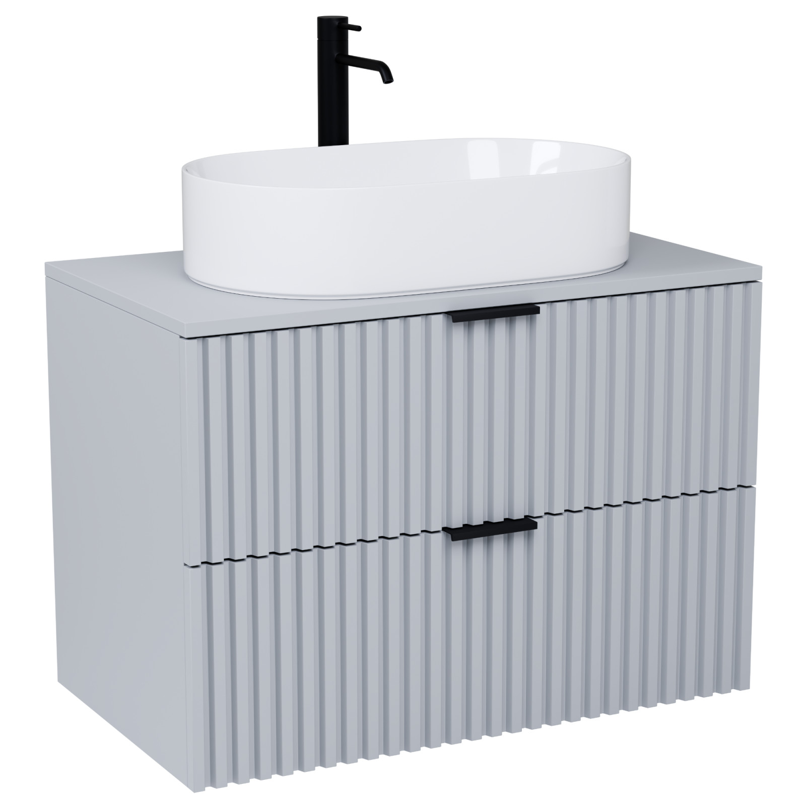 Rapallo Fume Grey 60 komplett fürdőszoba bútor szett, matt fekete fogantyúkkal
