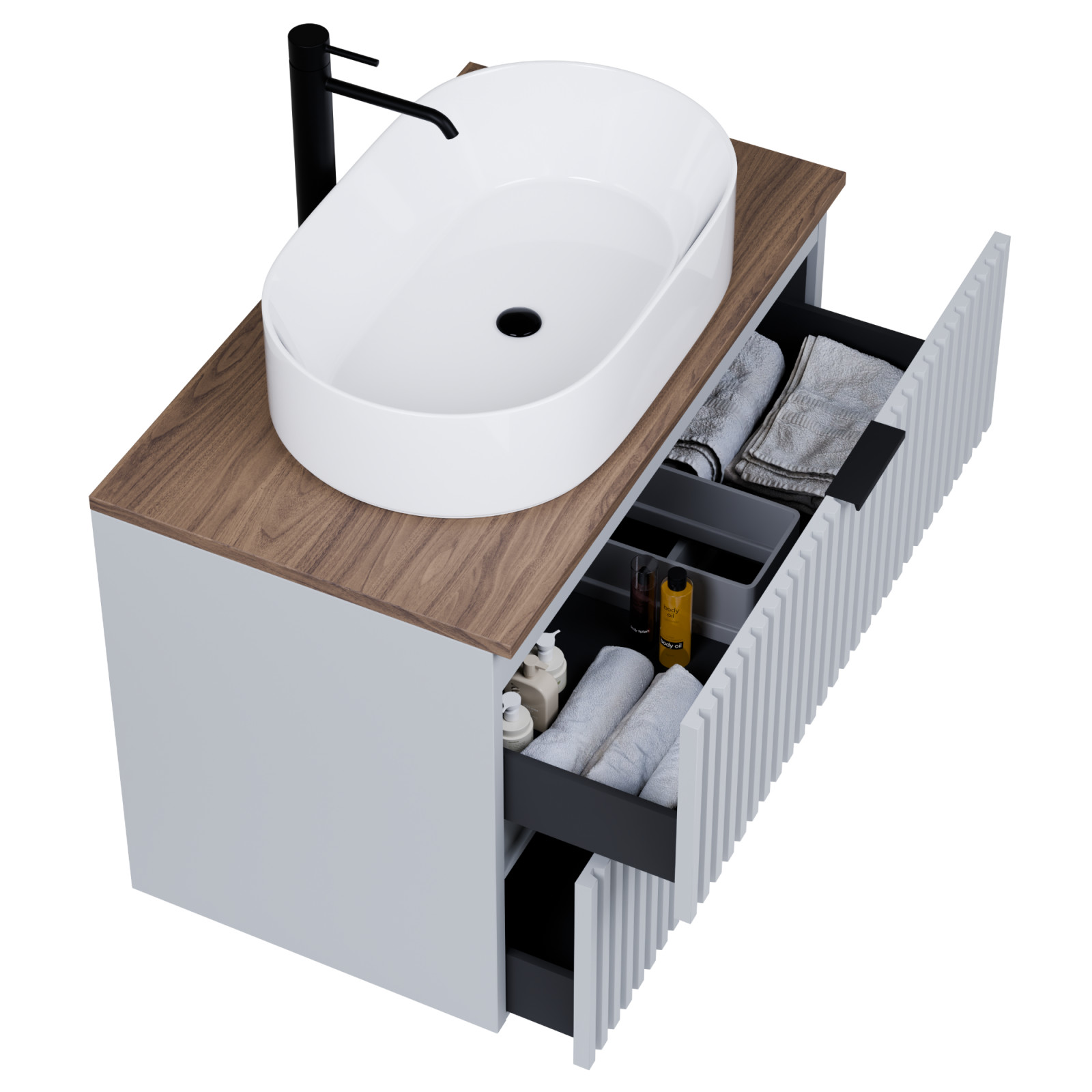 A fiókok bástyás kialakításának köszönhetően teljesen új szintre emeli a a fürdűszobáját, megteremtve a modern és kifinomult megjelenést.