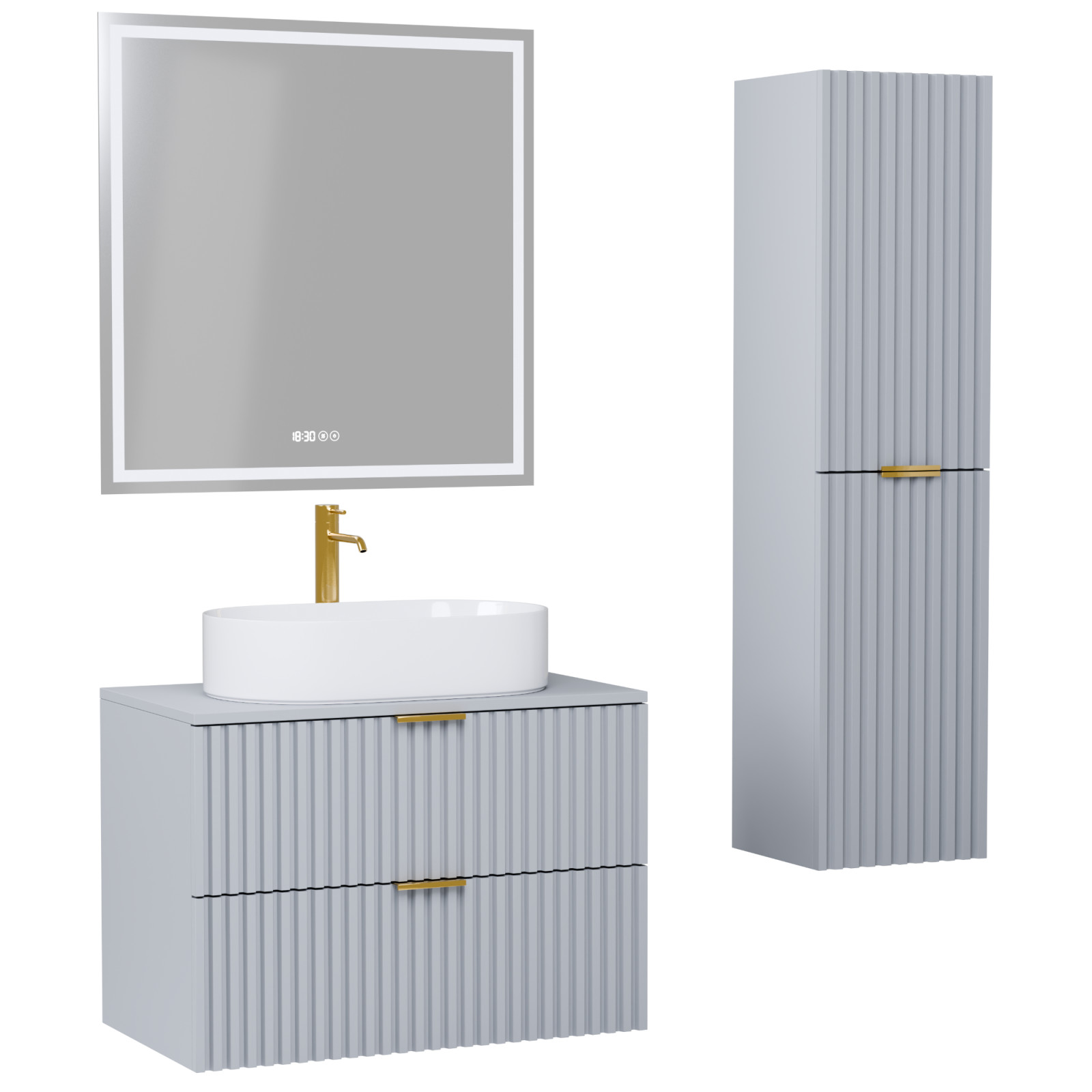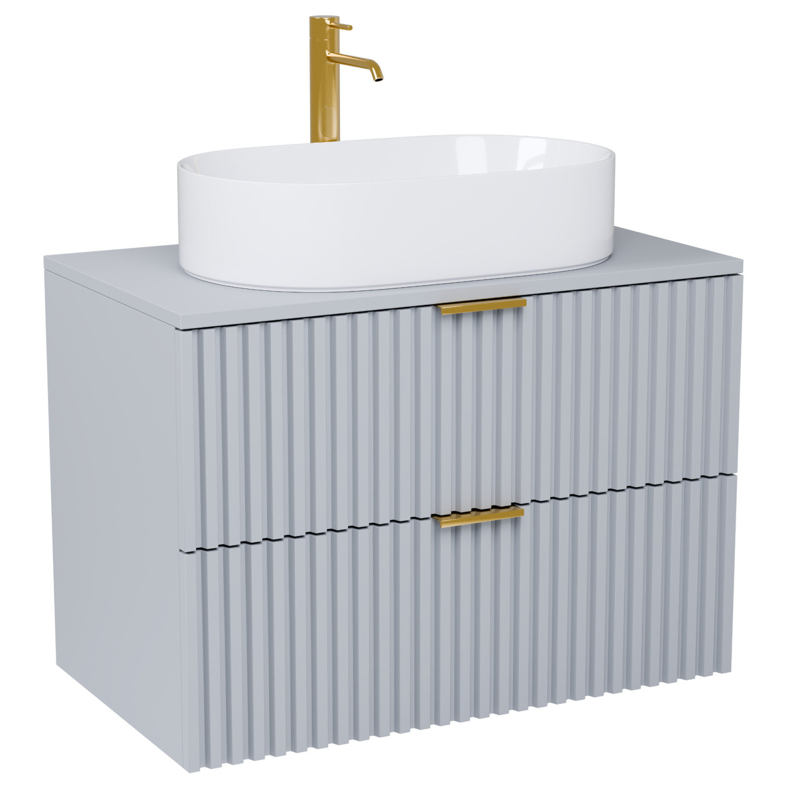 Rapallo Fume Grey 80 komplett fürdőszoba bútor szett, szálcsiszolt arany fogantyúkkal