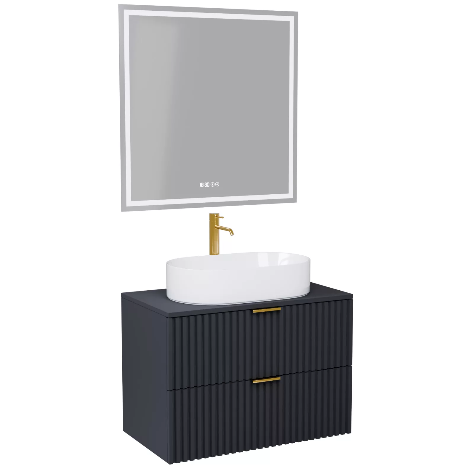 HD Rapallo Matt Antracit 60 komplett fürdőszoba bútor fali mosdószekrénnyel, szálcsiszolt arany fogantyúkkal, antracit mosdópulttal és tükörrel