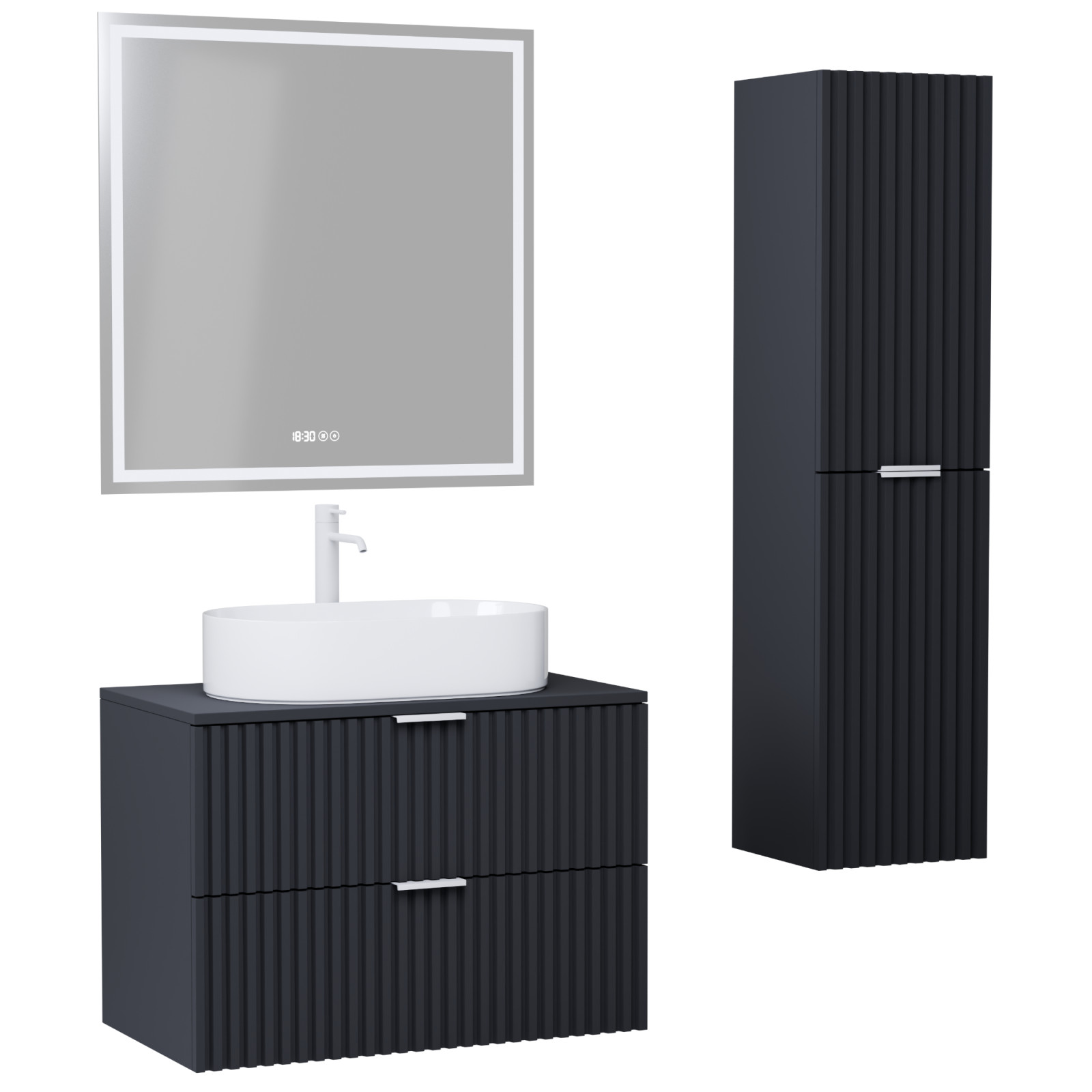 Rapallo Matt Antracit 60 komplett fürdőszoba bútor szett, matt fehér fogantyúkkal