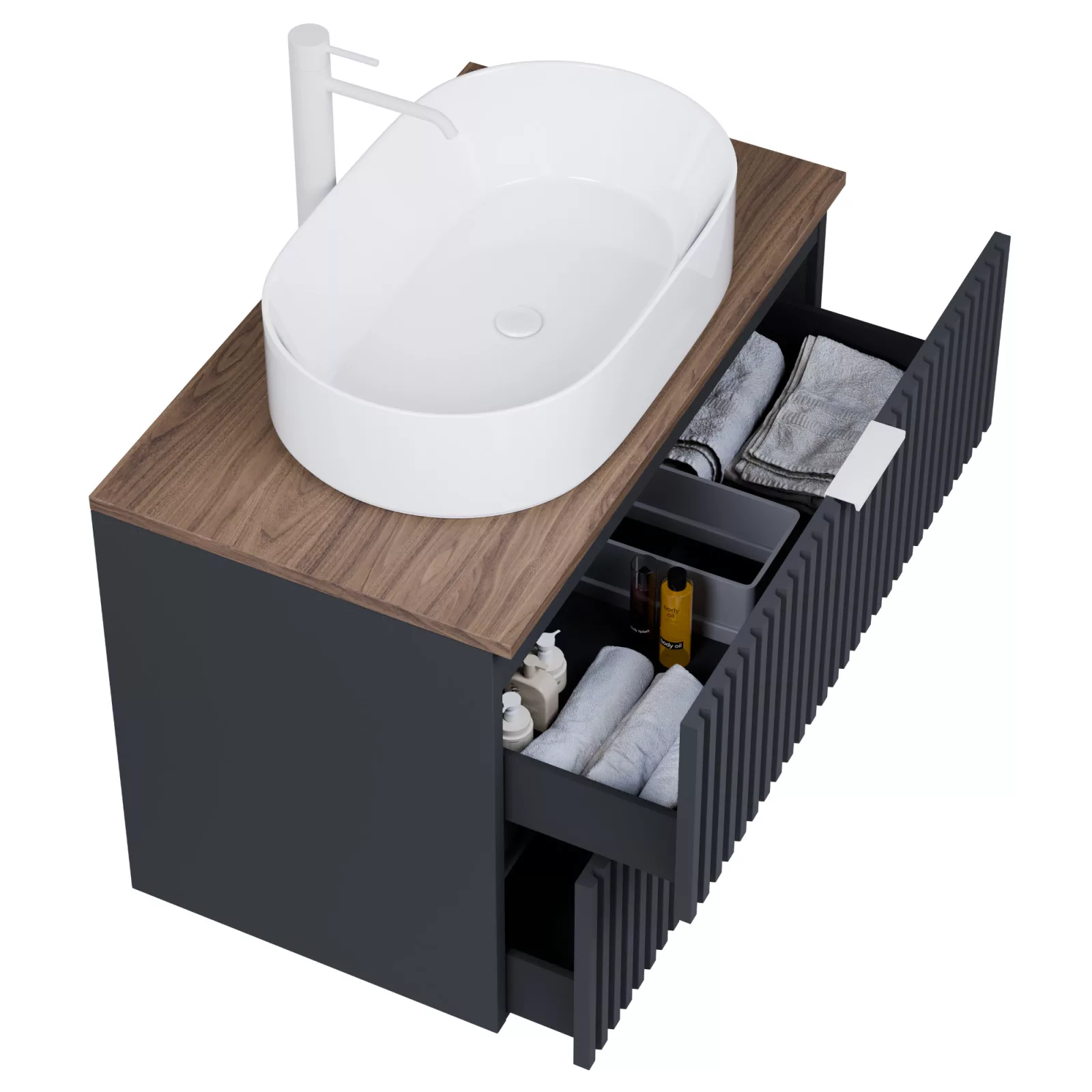 A fiókok bástyás kialakításának köszönhetően teljesen új szintre emeli a a fürdűszobáját, megteremtve a modern és kifinomult megjelenést.