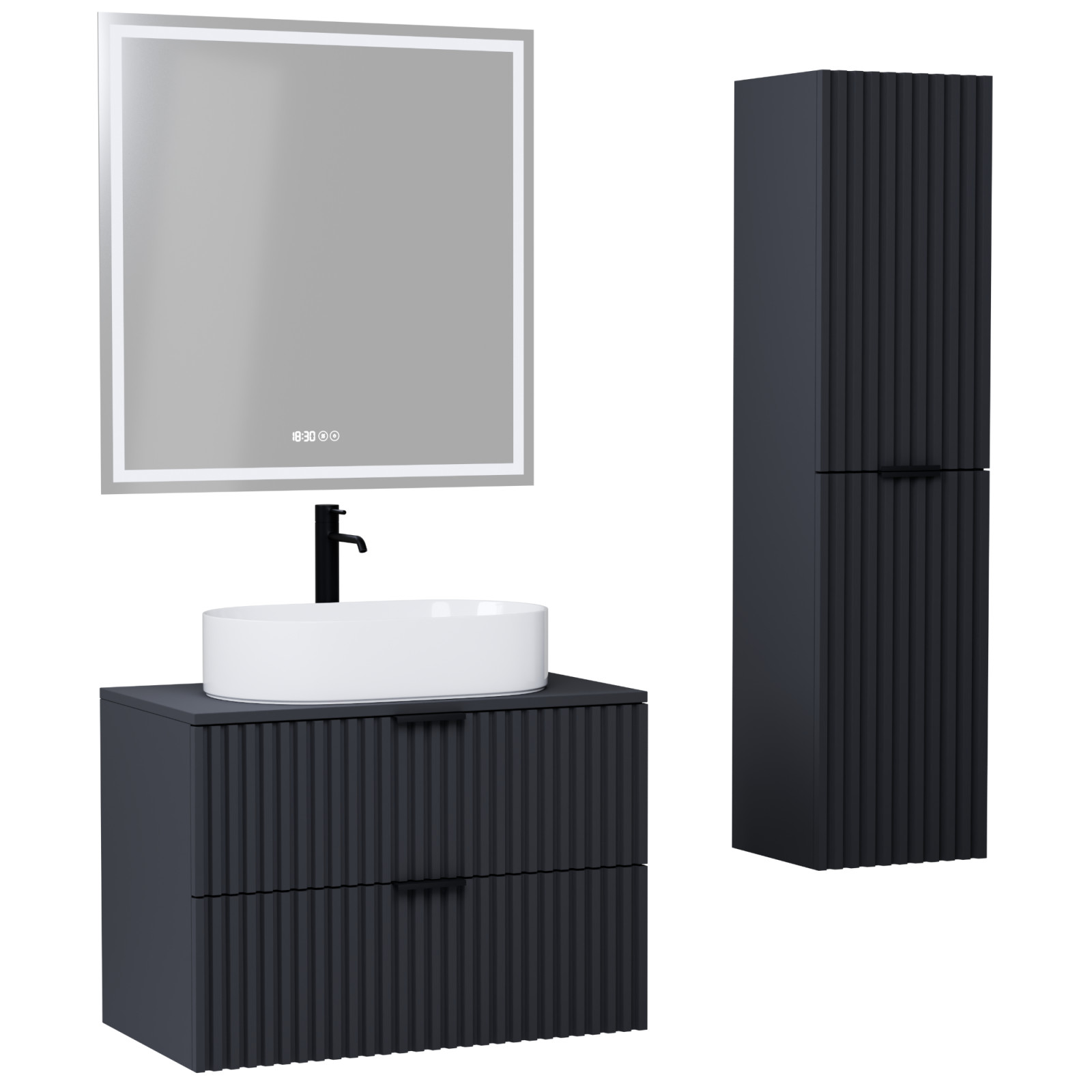 Rapallo Matt Antracit 60 komplett fürdőszoba bútor szett, matt fekete fogantyúkkal
