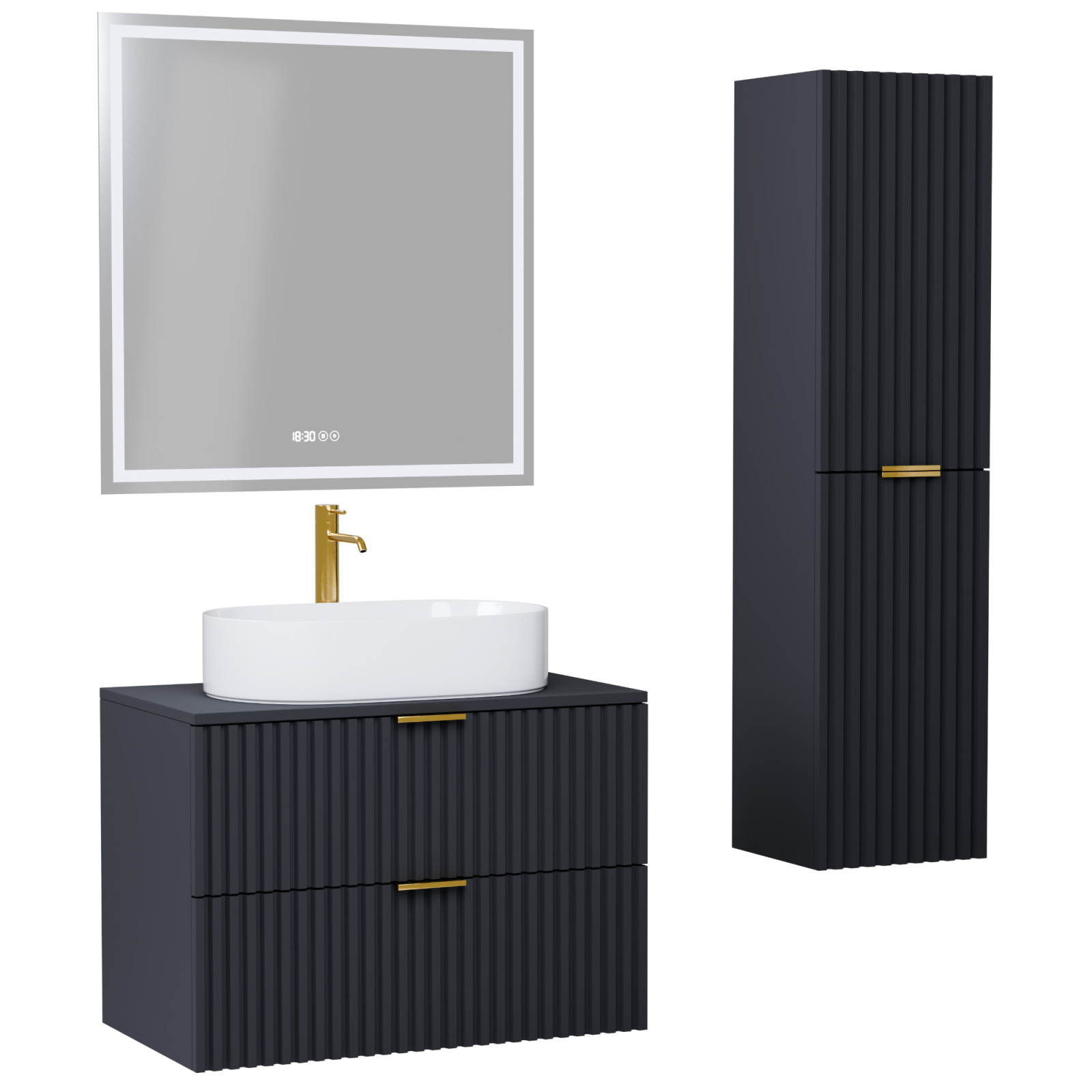 Rapallo Matt Antracit 80 komplett fürdőszoba bútor szett, szálcsiszolt arany fogantyúkkal